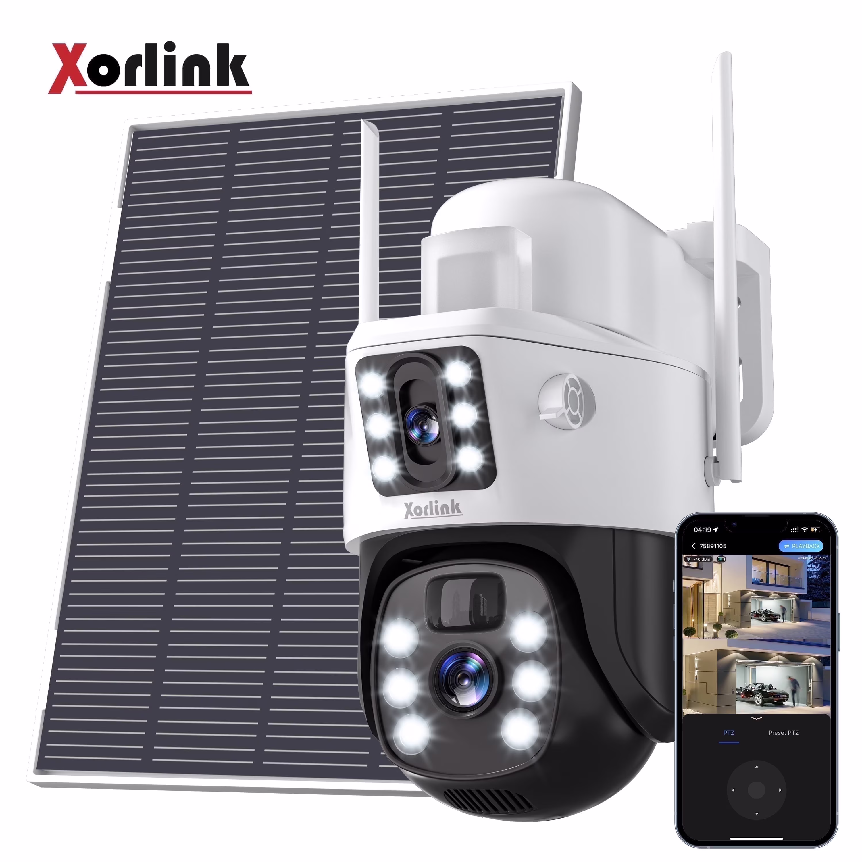 Xorlink 4K/8MP Solar Security Camera, 360° View Wireless Outdoor Camera, Waterproof PIR Detection, Rechargeable Battery Powered Home Dual Lens Surveillance Camera with Color Night Vision 2-Way Audio