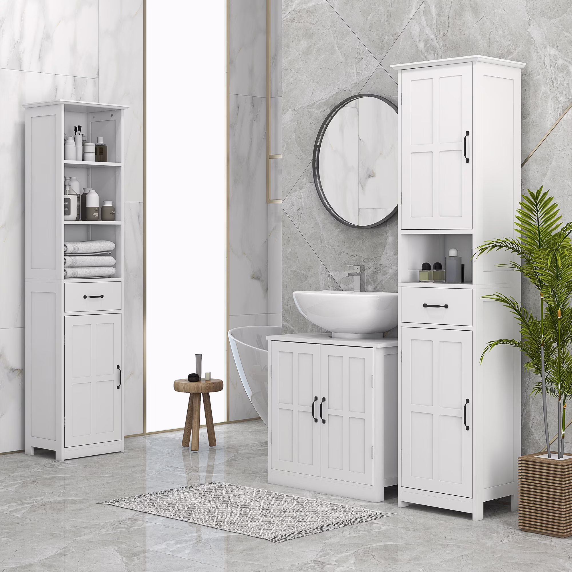 kleankin Pedestal Under-Sink Cabinet, Bathroom Storage Unit with Double Doors and Adjustable Shelf, White