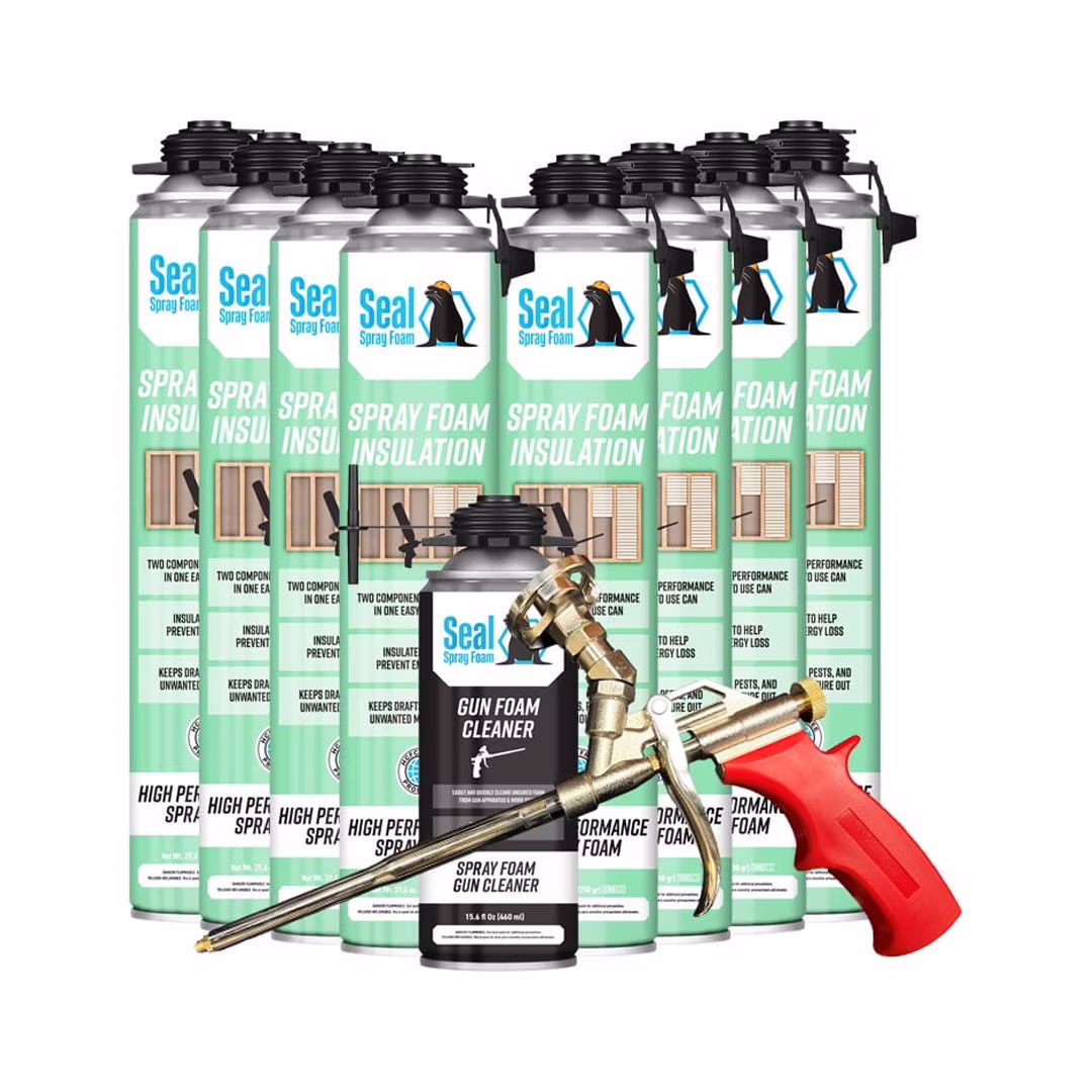 Seal Spray Foam High Performance Closed Cell Insulating Foam Can Kit w/Angled Gun Foam Applicator and 1 Can of Cleaner (200 Board FT-8 Cans)