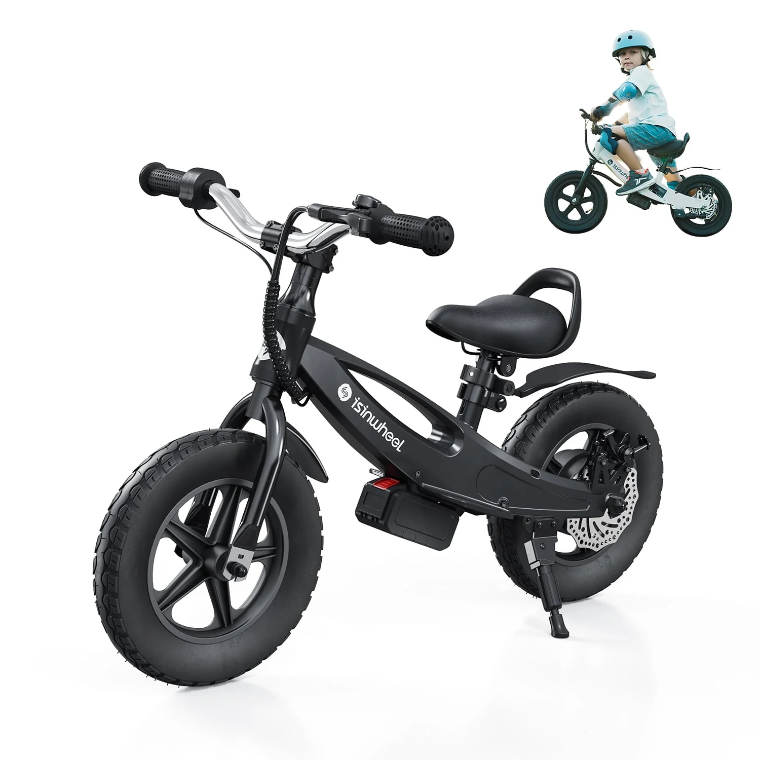 iSinwheel SK12 Electric Balance Bike for Kids 150W Motor, Two Speed Dual Brake with Adjustable Seat, 12 Inch Inflatable Tire Dirt Bike Electric Scooters for Boys and Girls Black