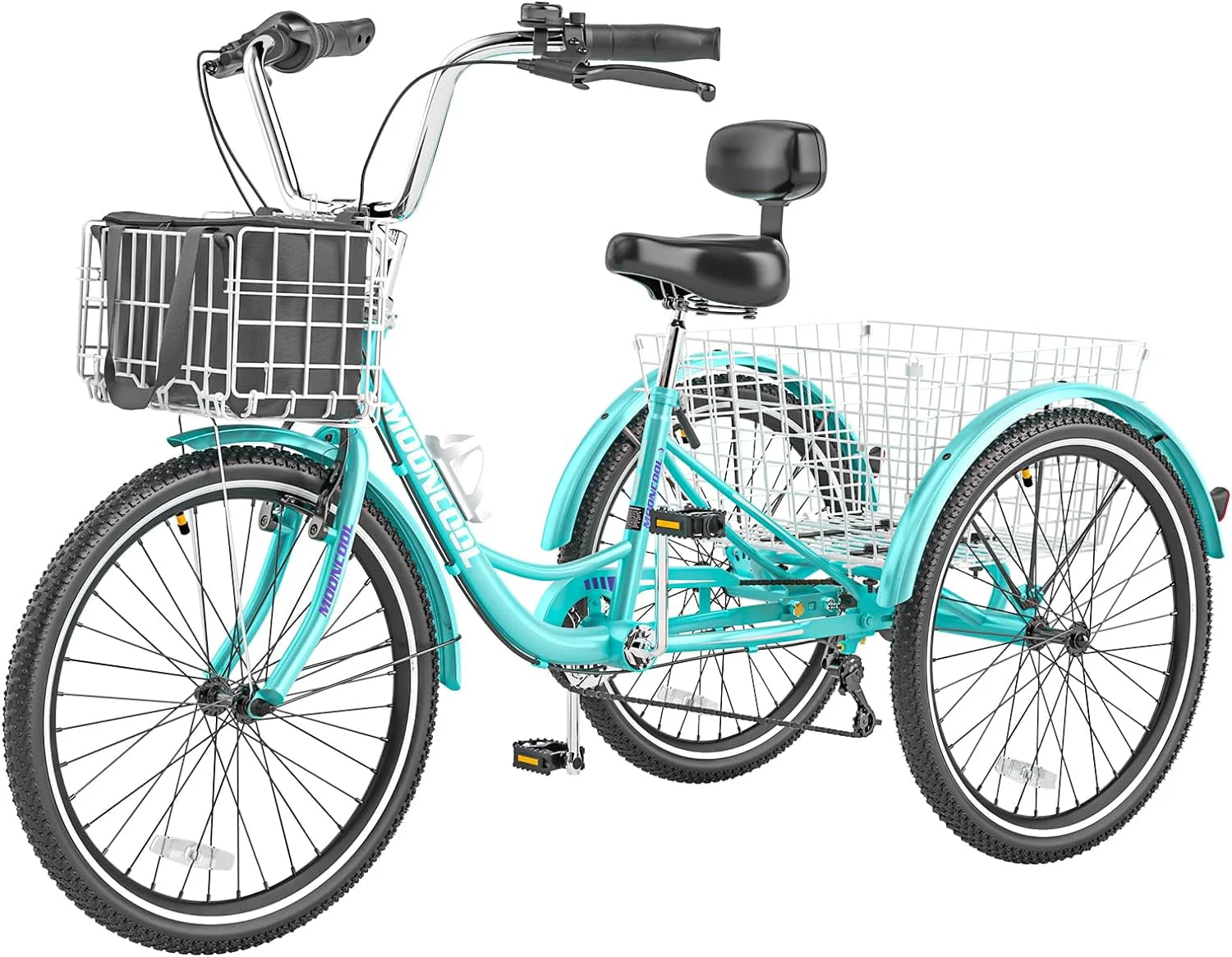 MOONCOOL Adult Tricycles with Front&Rear Basket, 24 26 inch 7 Speed 3 Wheel Bikes, Three-Wheeled Bicycles Adult Trike with Backrest for Seniors, Women, Men