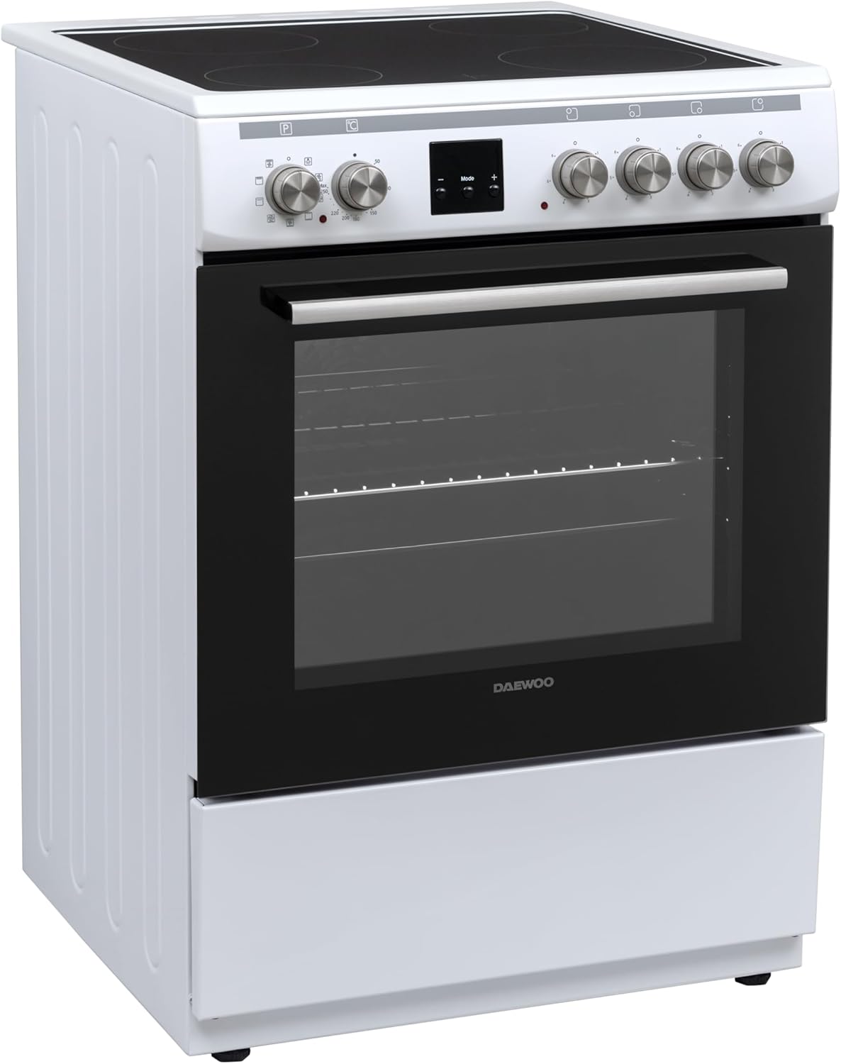 Daewoo F6EV22WL3DE Standherd mit Glaskeramik-Kochfeld. A. Garraumvolumen: 65 L. 8 Beheizungsarten mit Ober-/Unterhitze. Leicht-Reinigungs Email. 4 Kochzonen. Weiß
