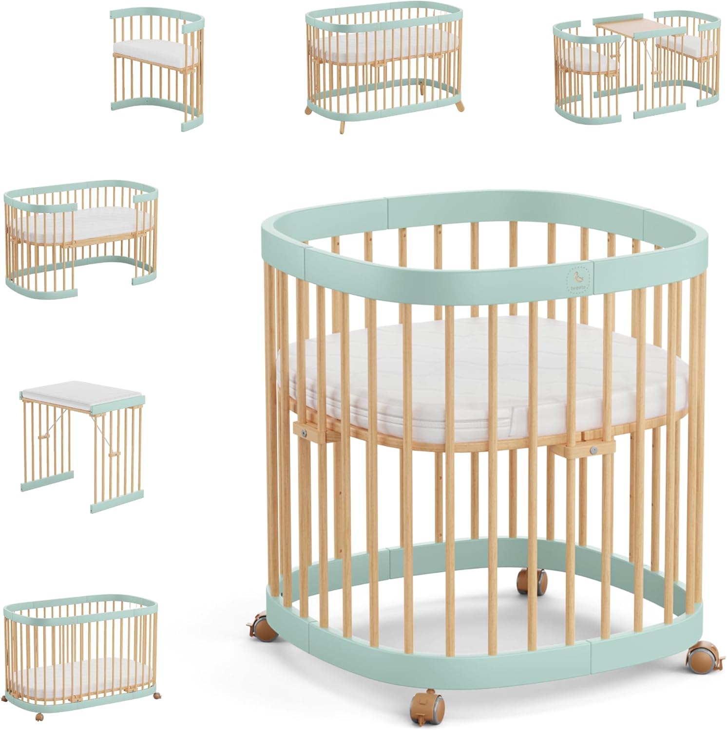 tweeto® Babybett 7 in 1 – mitwachsendes Babybett aus Holz | höhenverstellbares Beistellbett & Gitterbett | umbaubar zu Kinderbett & Laufstall (Buche Natur)