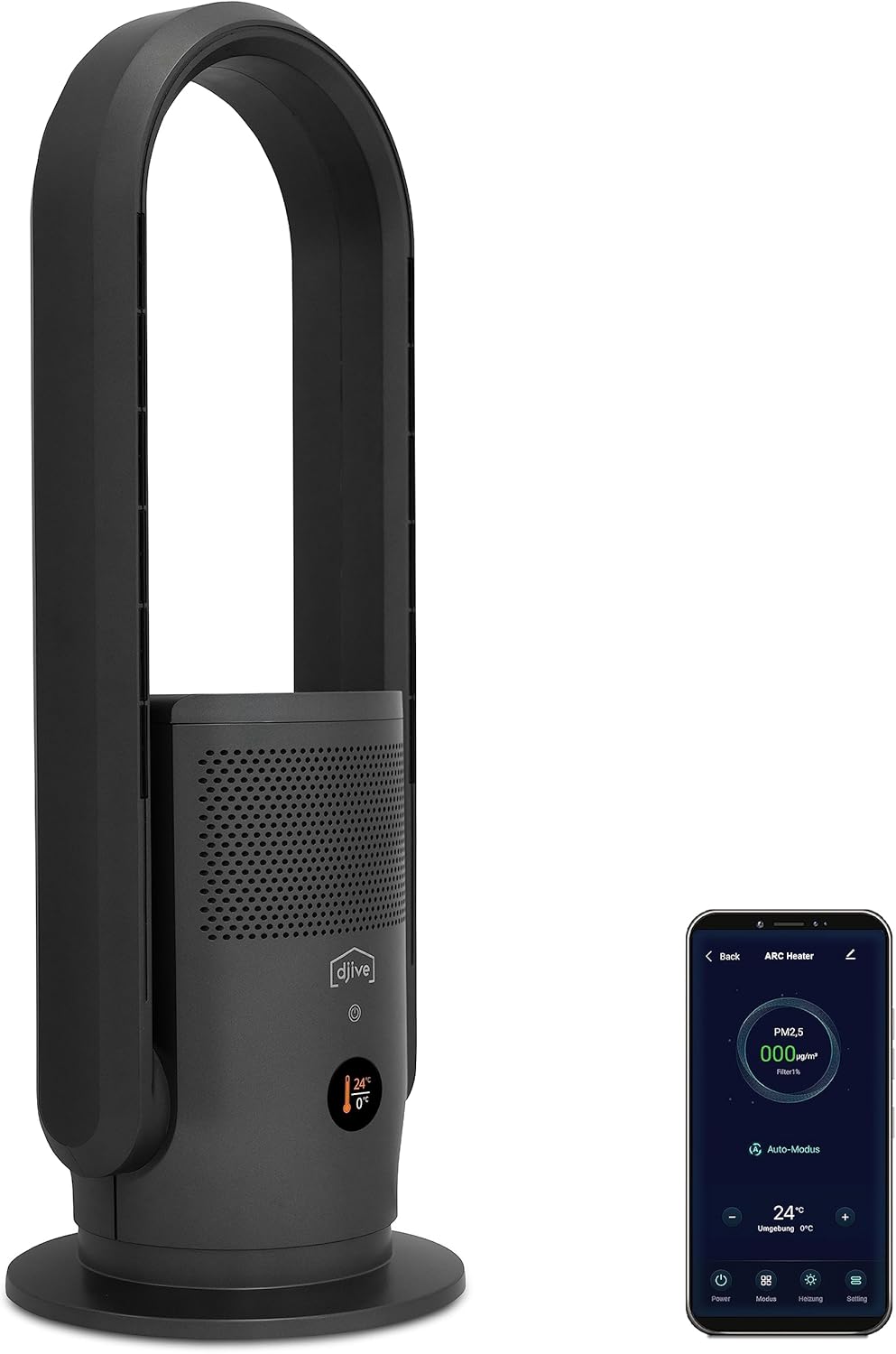 djive ARC Humidifier 3in1 leiser Luftreiniger. Luftbefeuchter mit Hygrometer & Ventilator. HEPA 14 Filter. UVC. App. Alexa. rotorlos. Raumluftbefeuchter & Reiniger für Kinderzimmer. Büro & Bad. grau