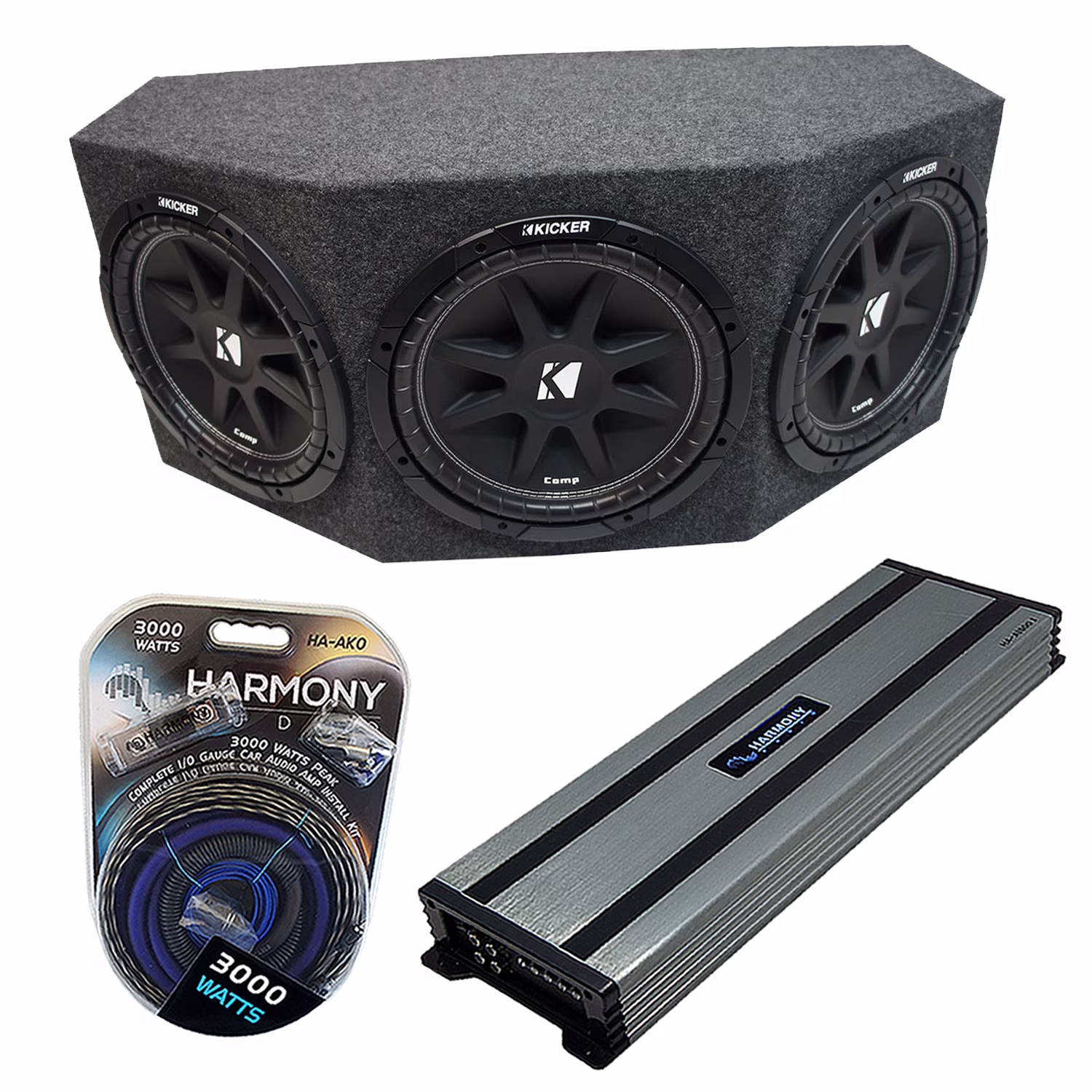 Kicker Comp C12 Triple 12" Subwoofer Loaded 1800 Watt Sub Box & HA-A1500.1 Amp