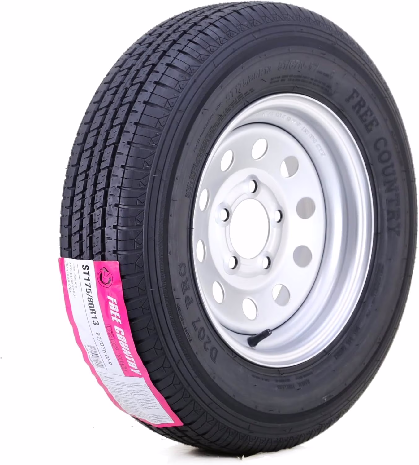 Free Country Trailer Tire Wheel Assembly ST175/80R13 6-Ply C 91M 5 Lug on 4.5" PCD White Spoke Rim
