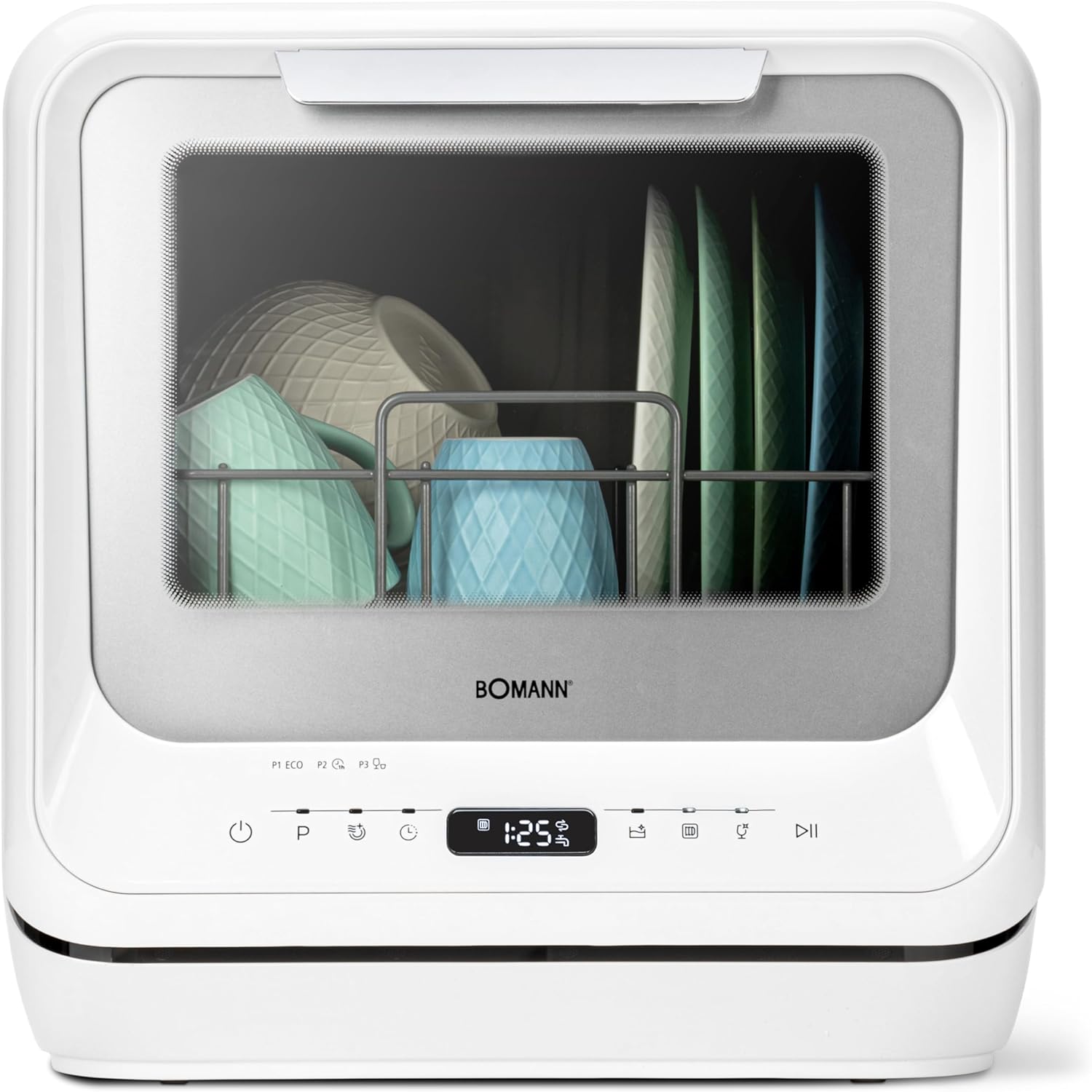 Bomann® Tischgeschirrspüler mit 5L Wassertank | ohne Wasseranschluss nutzbar | Mini Geschirrspüler | 5 Programme | Mini Spülmaschine 1-24 h Startvorwahl | Spülmaschine klein Tischspülmaschine TSG 5701