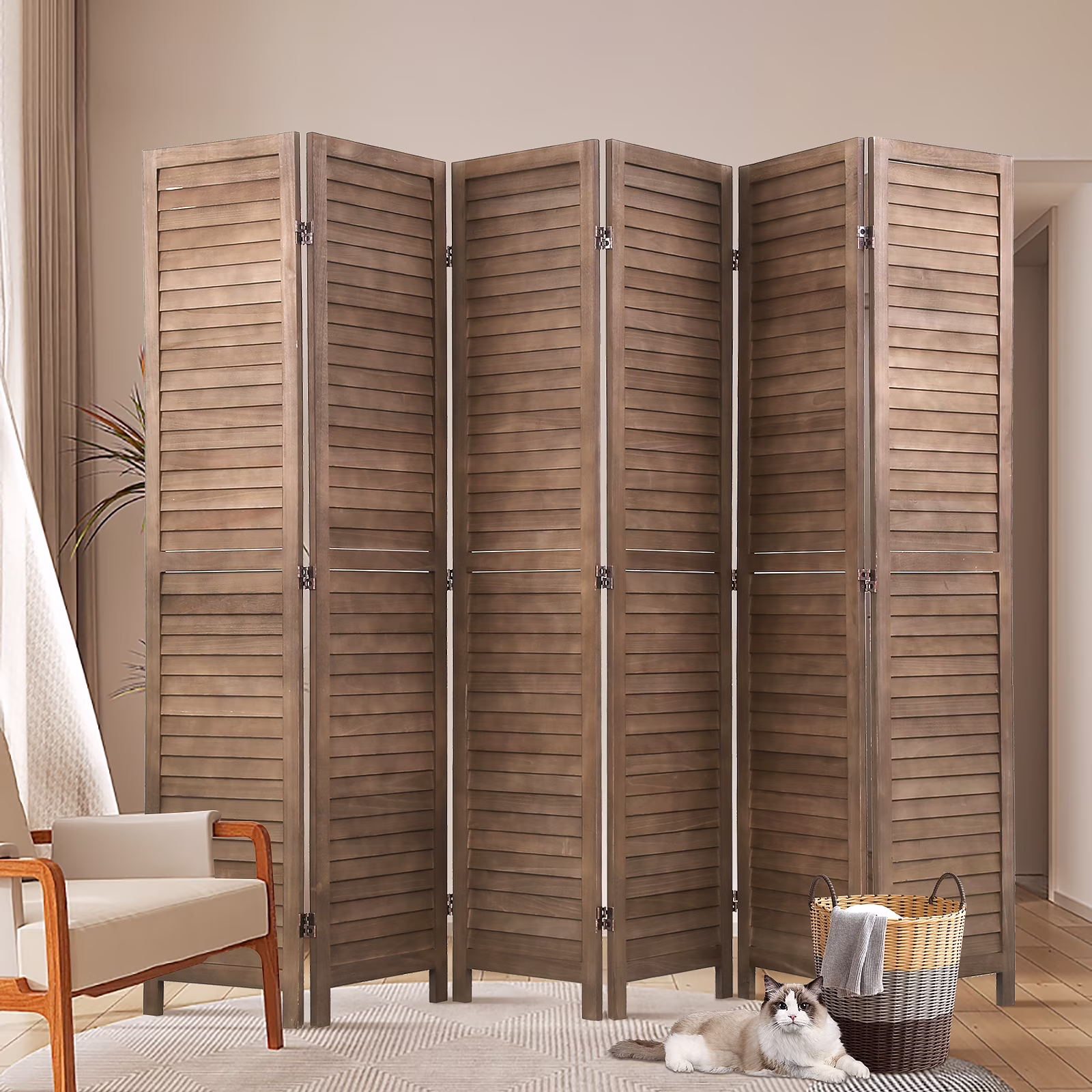 Dkelincs 6 Panel Wood Room Divider Folding Privacy Screen 5.75 Ft Freestanding Partition Wall Divider, Brown