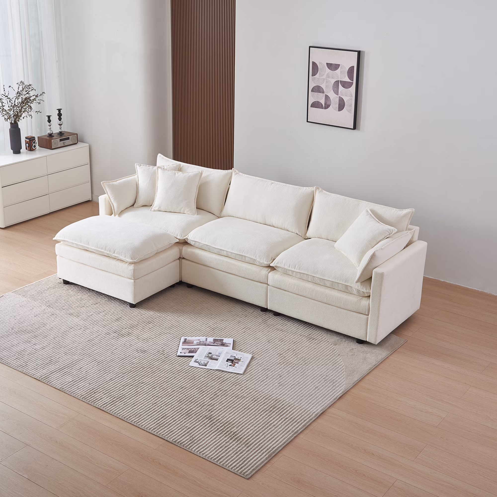 Youdao 108" Modular Sectional Couch, Modern L-Shaped Convertible Sofa with Moveable Ottoman, Comfy Ultra-Soft Down Filled Cushioning, Classical Design Couch for Living Room, Apartment, Bedroom, Green