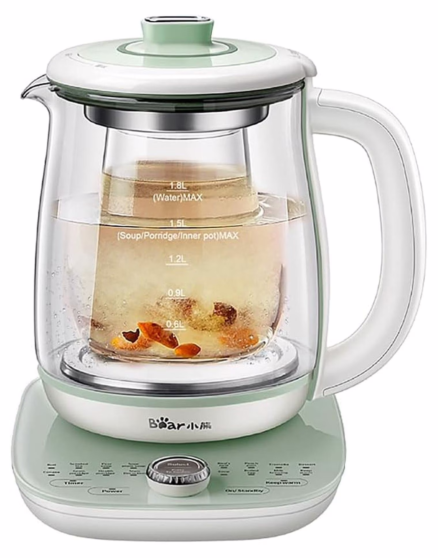 Bear Electric Kettle with Infuser & Stew Pot - 1.8L Health Pot, 16 Menus, Glass Kettle, Tea Maker, 120V, Green