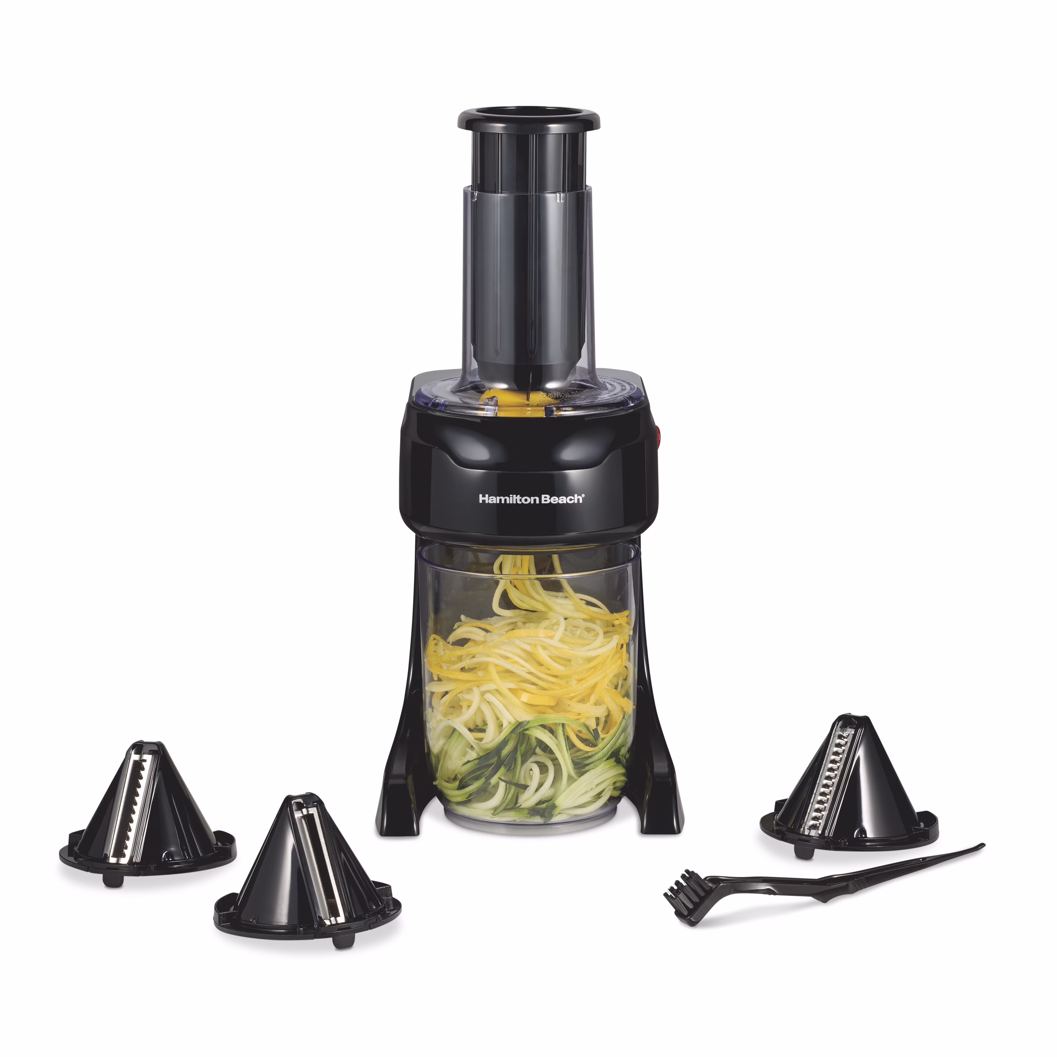 Hamilton Beach 3-in-1 Electric Spiralizer, 3 Cutting Cones, Metal Food Grip, 6 Cup Capacity, Black