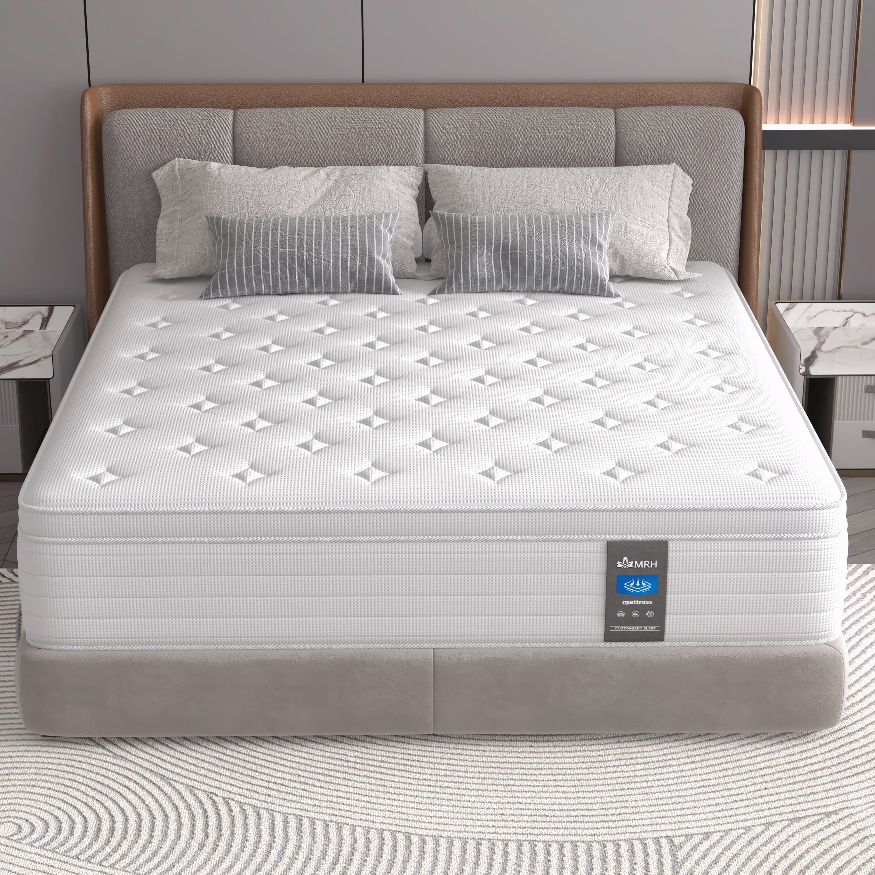 MRH 12 Queen Mattress Cooling Gel Memory Foam Hybrid Mattress Medium - Firm Breathable Pressure Relief White CertiPUR - US Certified Mattress with individually Pocket Springs for Kids and Adults