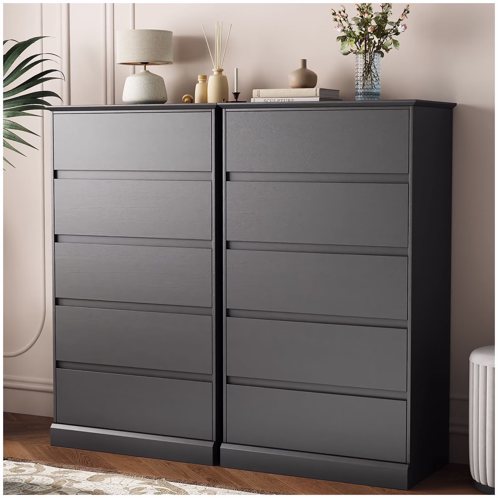 2 PCS Dresser for Bedroom, 5 Drawer Dresser Black Chest of Drawers for Living Room Dressing Room Entryway -2PCS