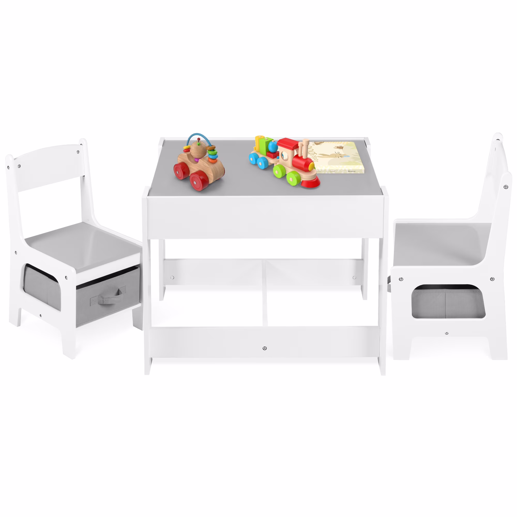LINLUX Kids Table and 2 Chairs Set, Children Activity Table Chairs with Chalkboard/Whiteboard, Grey