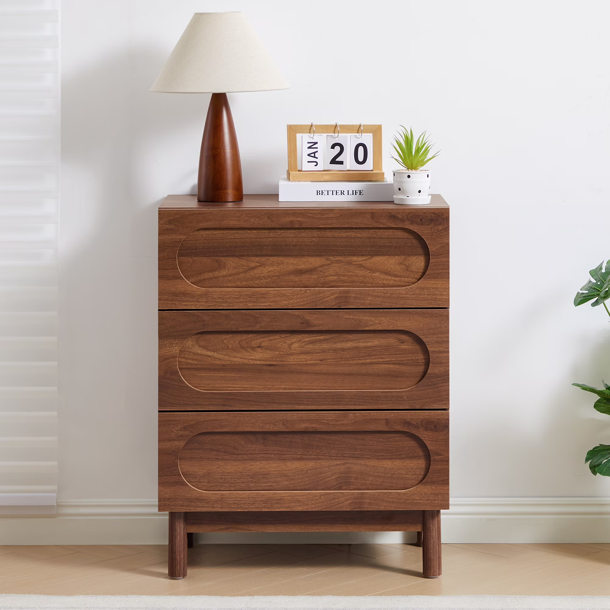 MIYZEAL Modern Wood Chest of 3 Drawers Bedroom Dresser, Wide Storage Cabinet & Contemporary Nightstand for Adults Walnut Finish Bedside Furniture