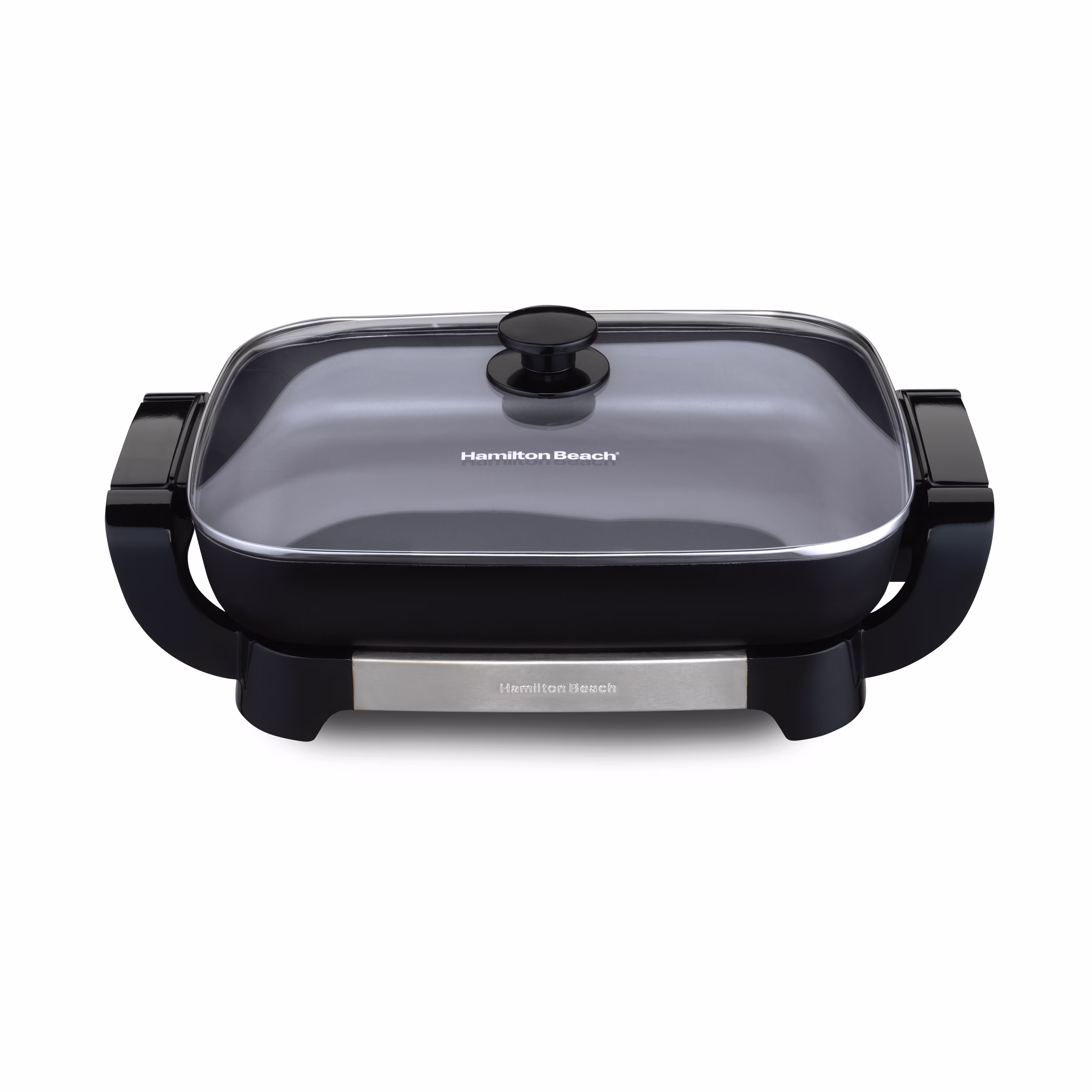Hamilton Beach Electric Skillet with Lid, 12" x 15" Ceramic Cooking Surface, Reversible Pan, Grey