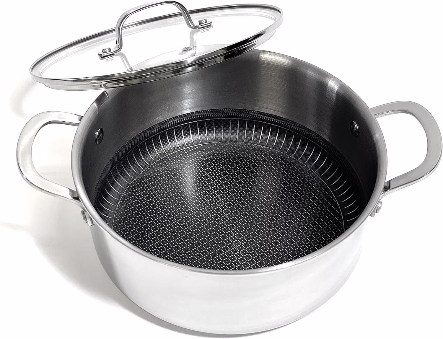 Lexi Home 4.8-Quart Diamond Tri-Ply Non Stick Casserole Pot with Glass Lid Stainless Steel Cookware