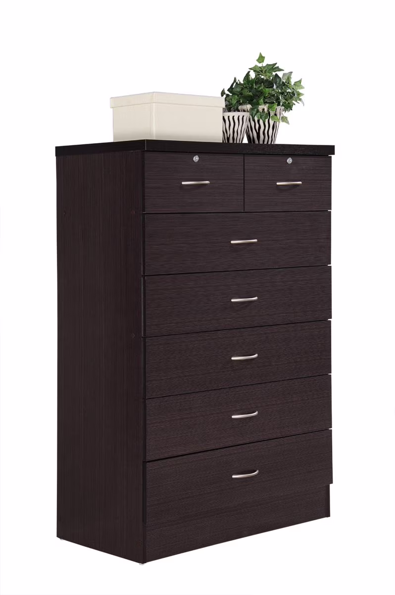 Hodedah 7 Drawer Dresser with Two Locks, Chocolate