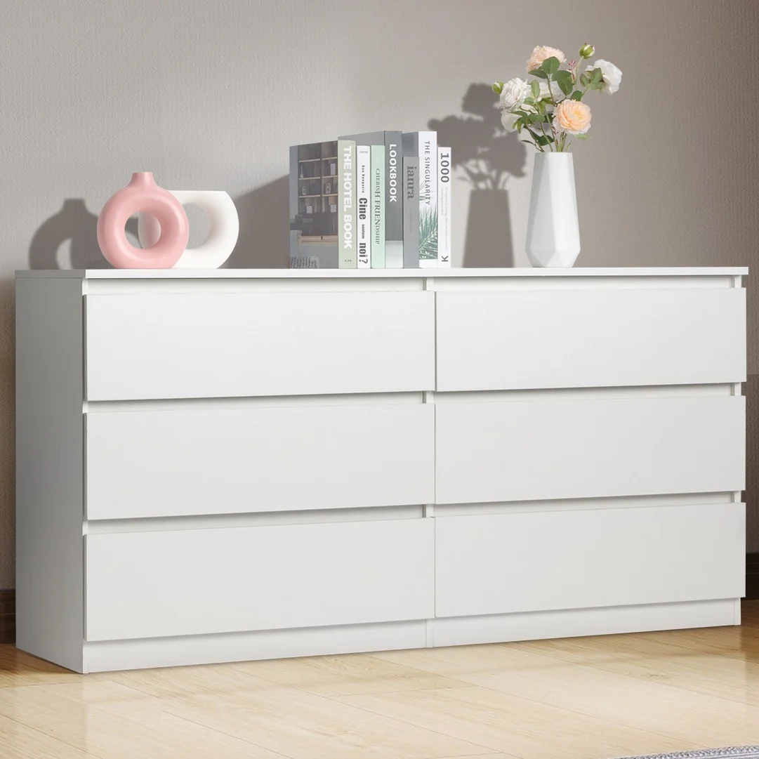 Ktaxon 6 Drawer Double Dresser Wood Dresser Storage Cabinet Drawer Organizer Chest Of Drawers, White