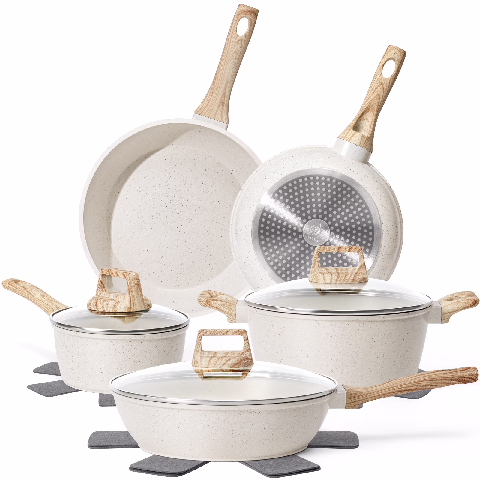 12pcs Pots and Pans Set Non Stick Granite Skillet Frying Kitchen Cooking Cookware for Daily Cooking-White
