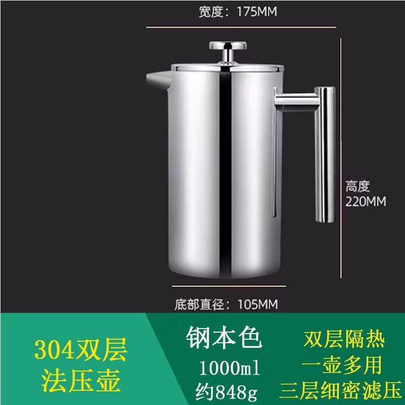 PAASTAI 304 Stainless Steel French Press Coffee Maker with Double-Wall Insulation, 35oz/1000ml Capacity Thermal Coffee Press Pot with Fine Mesh Filter and Ergonomic Handle for Tea & Coffee Brewing