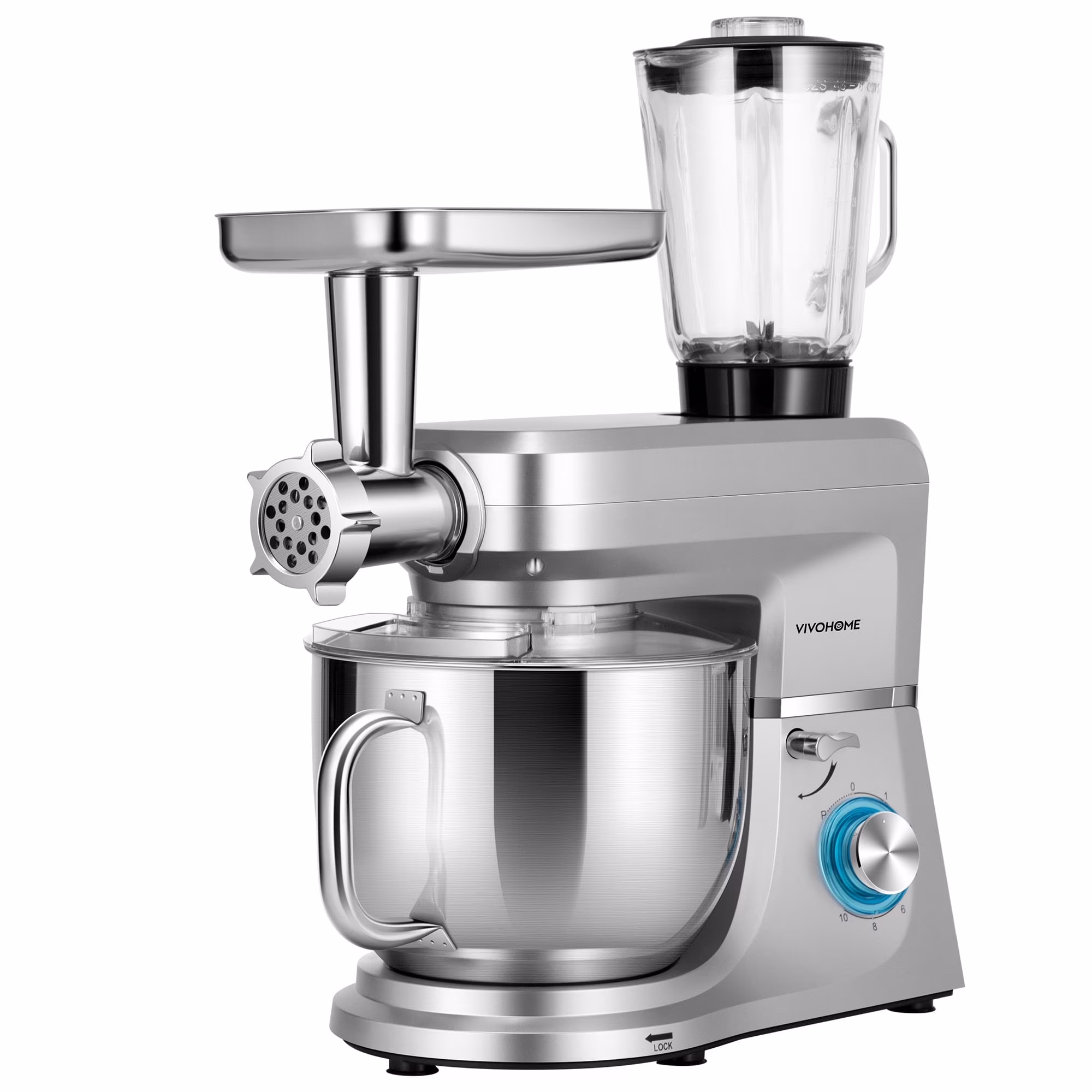 SPECSTAR 6 in 1 Multifunctional Stand Mixer with 8.5 Quart Stainless Steel Bowl, 660W 10 Speed Tilt-Head, Silver
