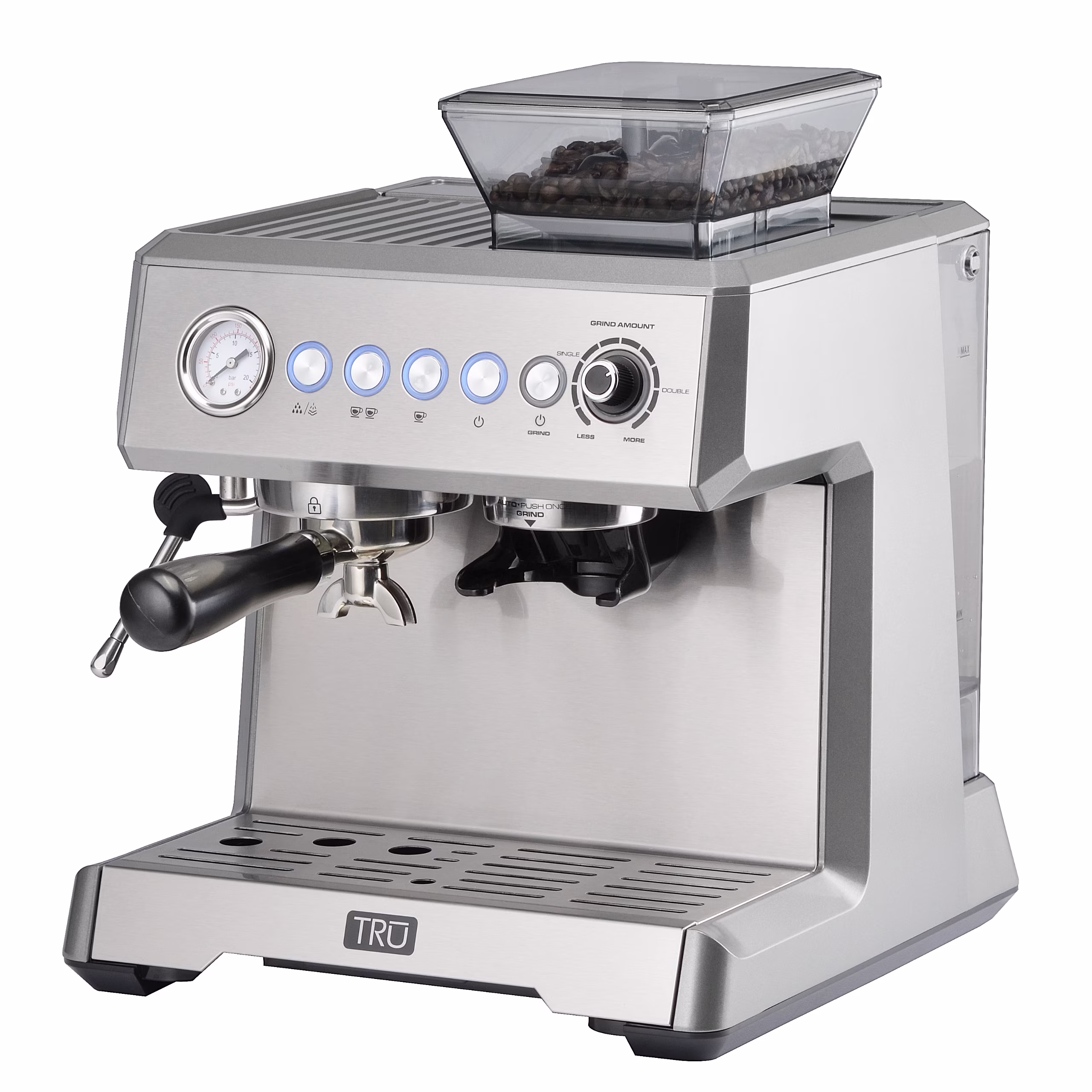 TRU All-in-One Espresso Maker with Grinder & Steam Wand - Premium Espresso Machine with Built-In Coffee Grinder - 15 Bar Pressure Pump - Adjustable Steam Controls & Cup Warmer