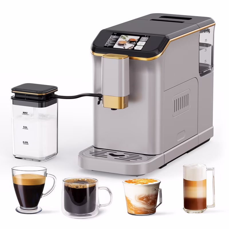 Towallmark 20 Bar Fully Automatic Espresso Machine, Built In Coffee Grinder & Milk Frother, 1.5L Removable Water Tank, Adjustable Shot Volume, For Home Office Use