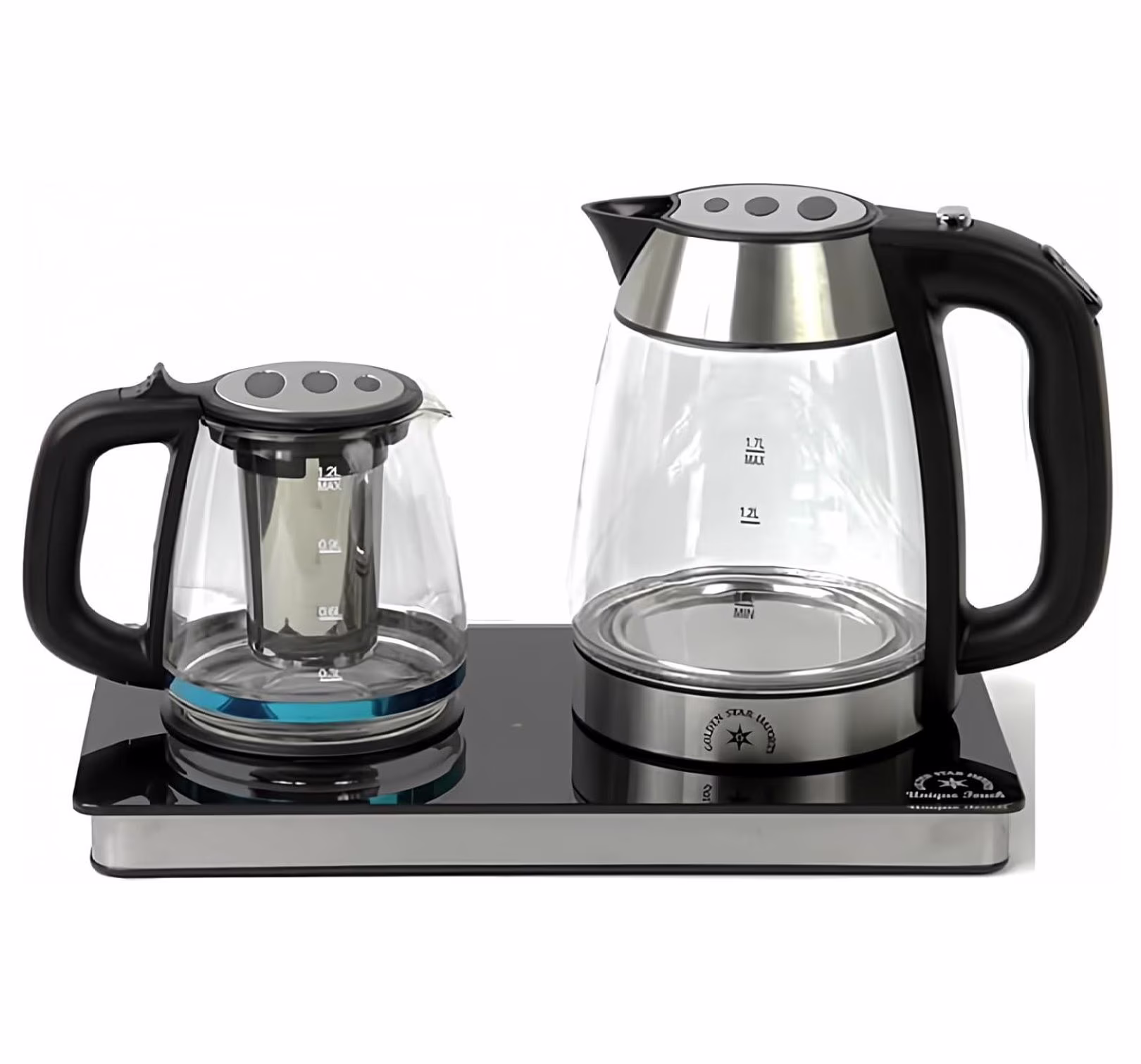 Electric Tea Maker Samovar, 1.7L Glass Kettle & 1.2L Teapot Set - Stainless Steel, Cordless, Keep Warm, 360° Swivel, Auto Shut-Off, LED Indicator
