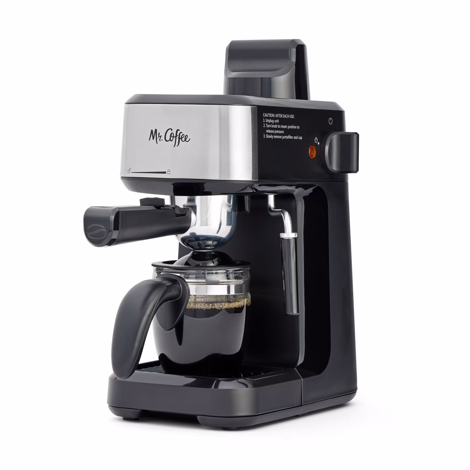 Mr. Coffee® 4-Shot Steam Espresso Máquina, Máquina para Hacer Capuchinos y Cafetera con Jarra de Vidrio