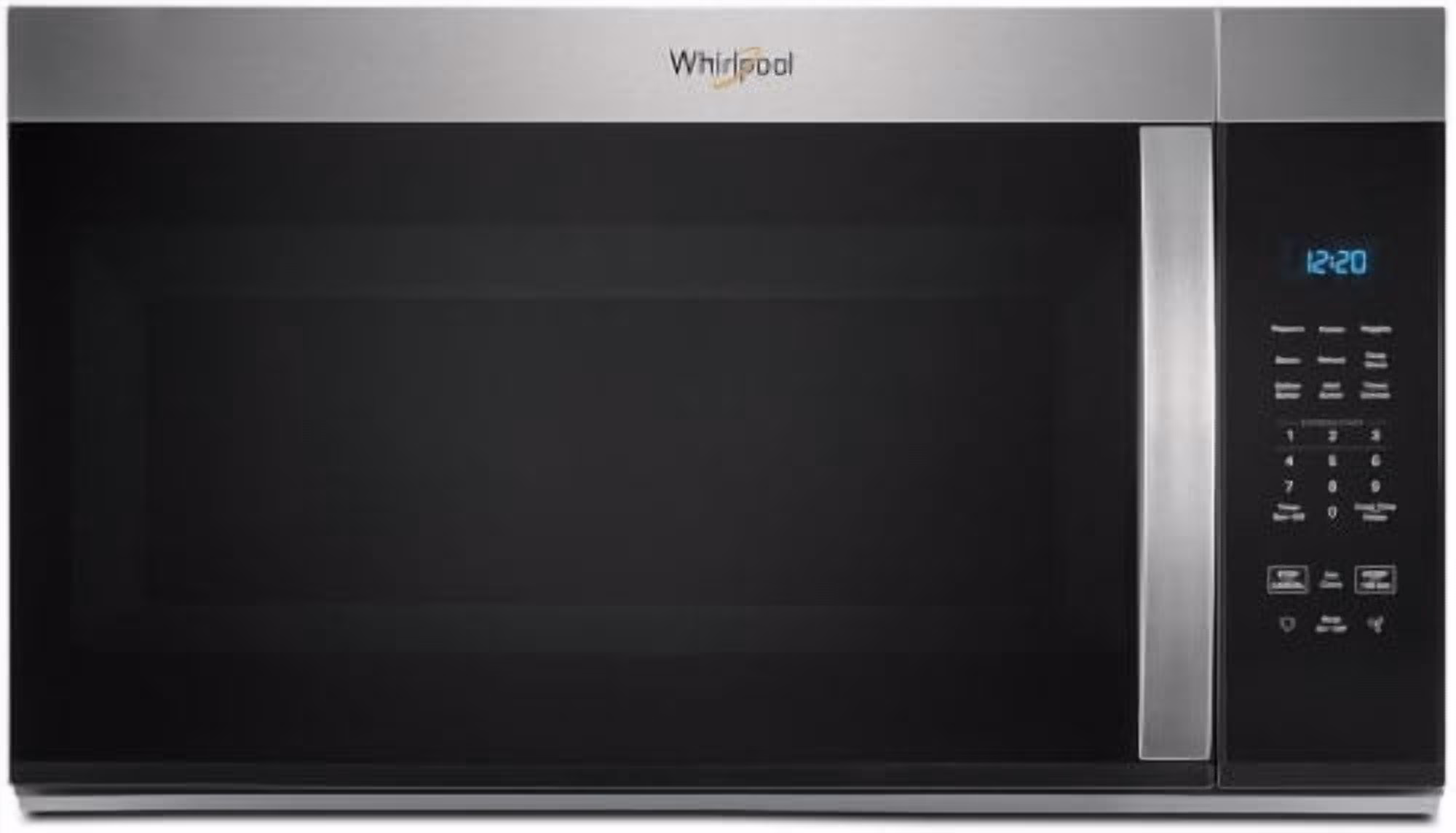 Whirlpool 1.7 cu. ft. Over-the-Range Microwave Oven with 1,000 Watts, 2-Speed 300 CFM Venting System, Add 30 Seconds, Dishwasher-Safe Turntable Plate, and Cooktop Lighting: Stainless Steel