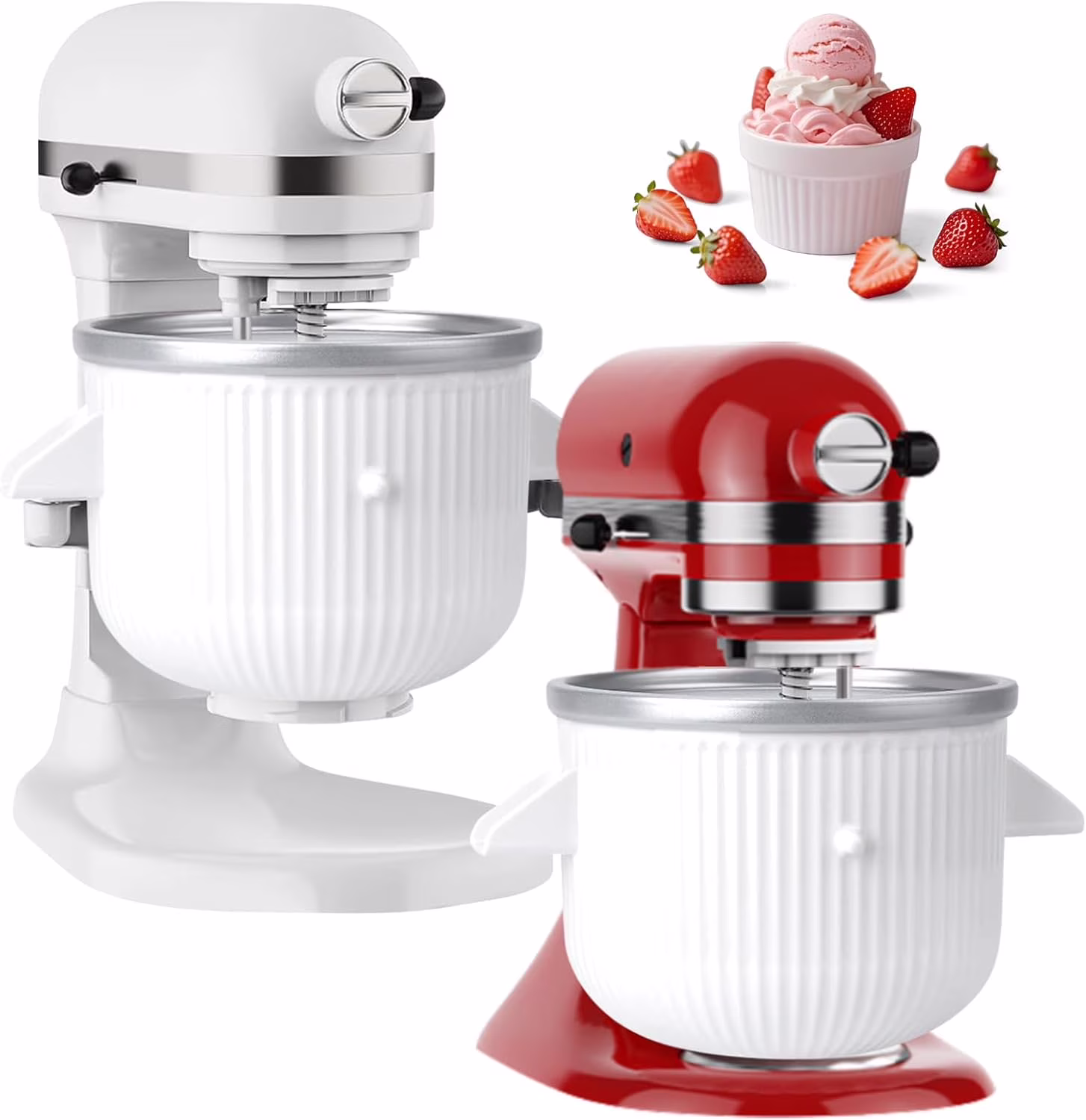 Ice Cream Attachment for KitchenAid Stand Mixer,Fits 4.5-5Qt Tilt-Head/6-7Qt Bowl-Lift Stand Mixers, 2-Quart Frozen Kitchenaid Ice Cream Maker Attachment, Ice Cream & Sorbet Gelato Maker