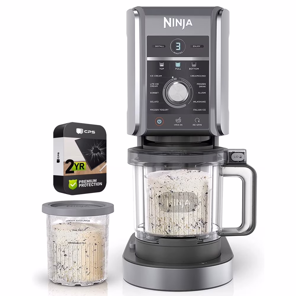 Restored Ninja NC501 CREAMi Deluxe 11-in-1 XL Ice Cream Maker Silver Bundle with 2 YR CPS Enhanced Protection Pack (Refurbished)