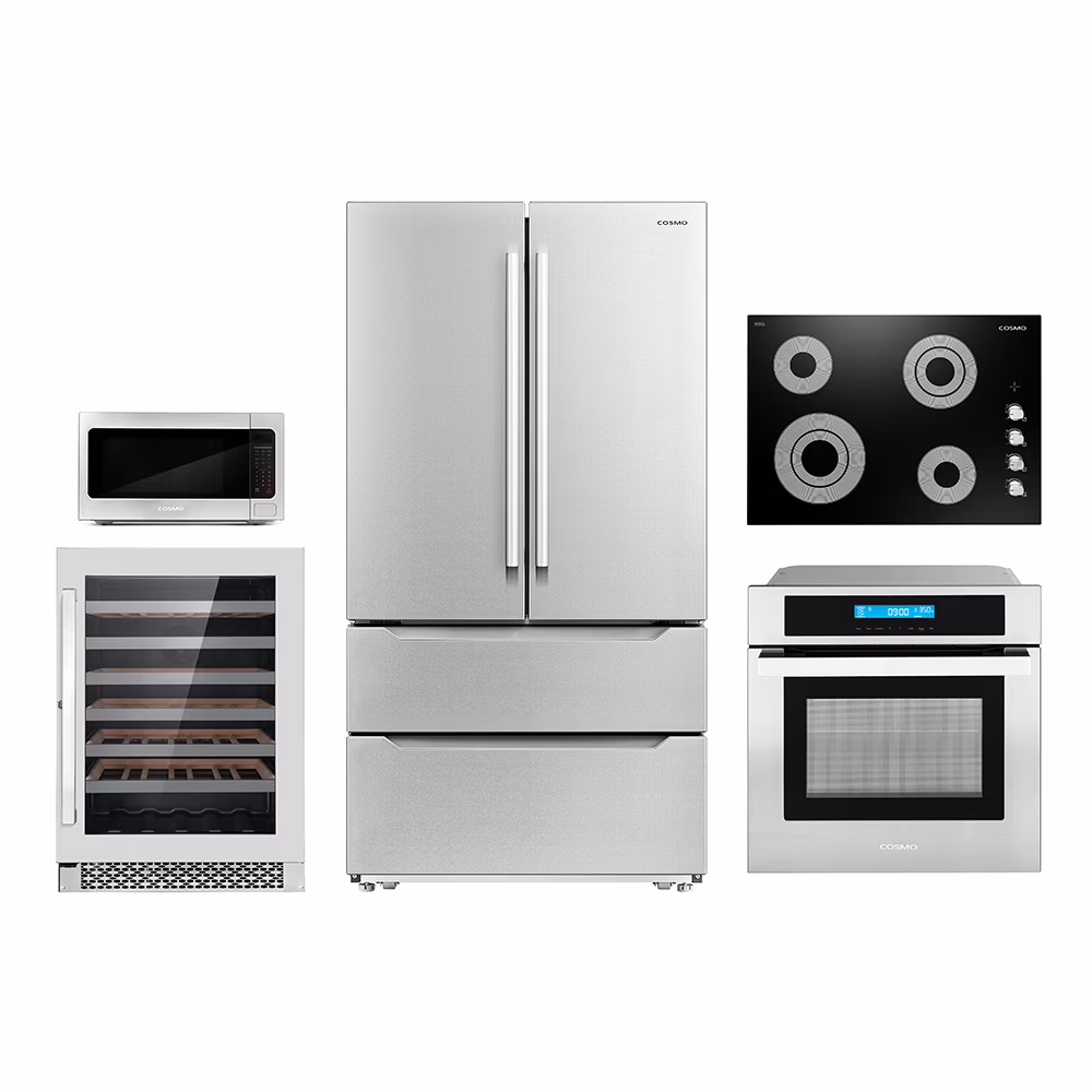 Cosmo 5 Piece Kitchen Appliance Package With 30" Electric Cooktop 30" Single Electric Wall Oven 30" Over-the-range Microwave French Door Refrigerator & 24" Built-in Fully Integrated Dishwasher