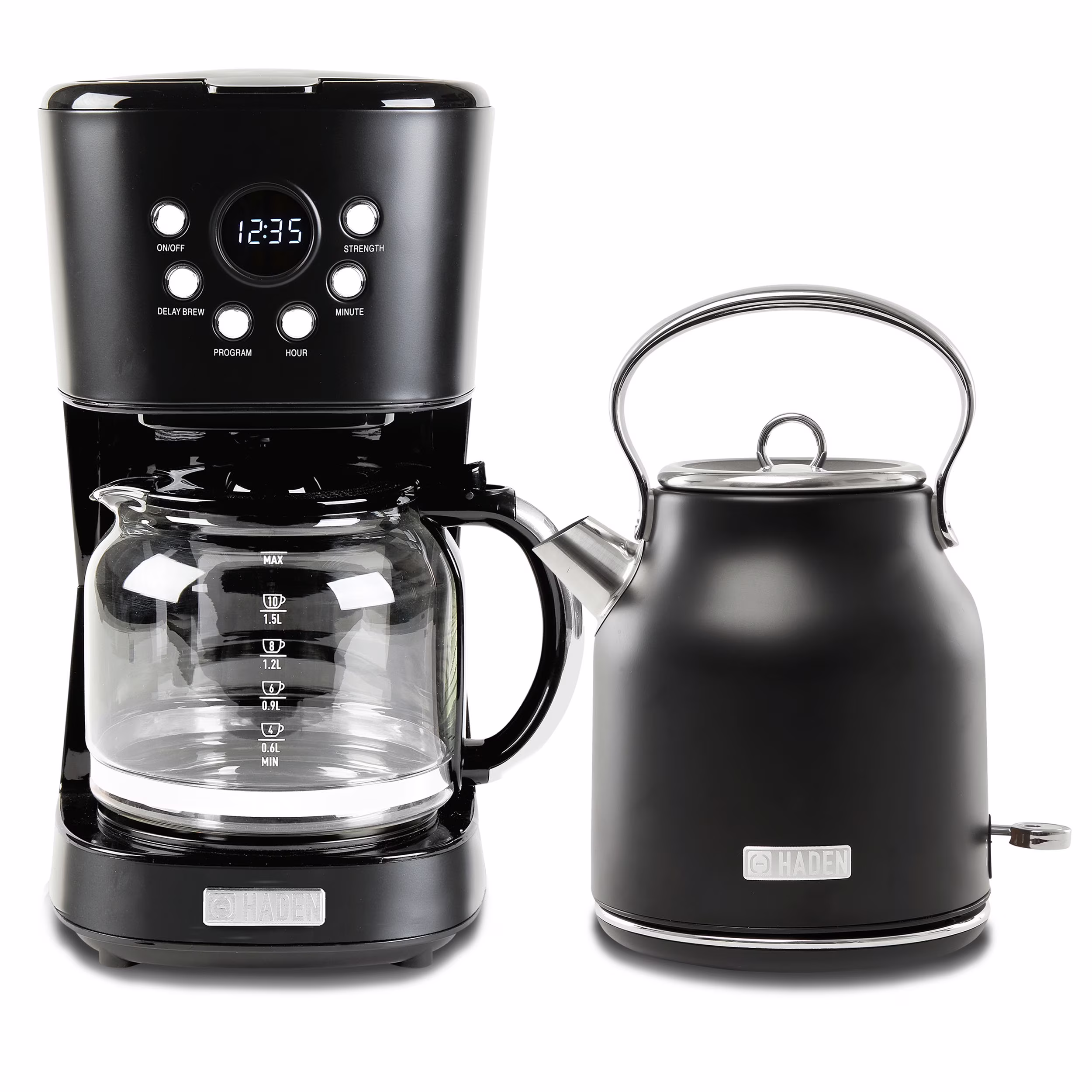 Haden Coffee Maker & Heritage 1.7 Liter Electric Kettle, Black & Chrome