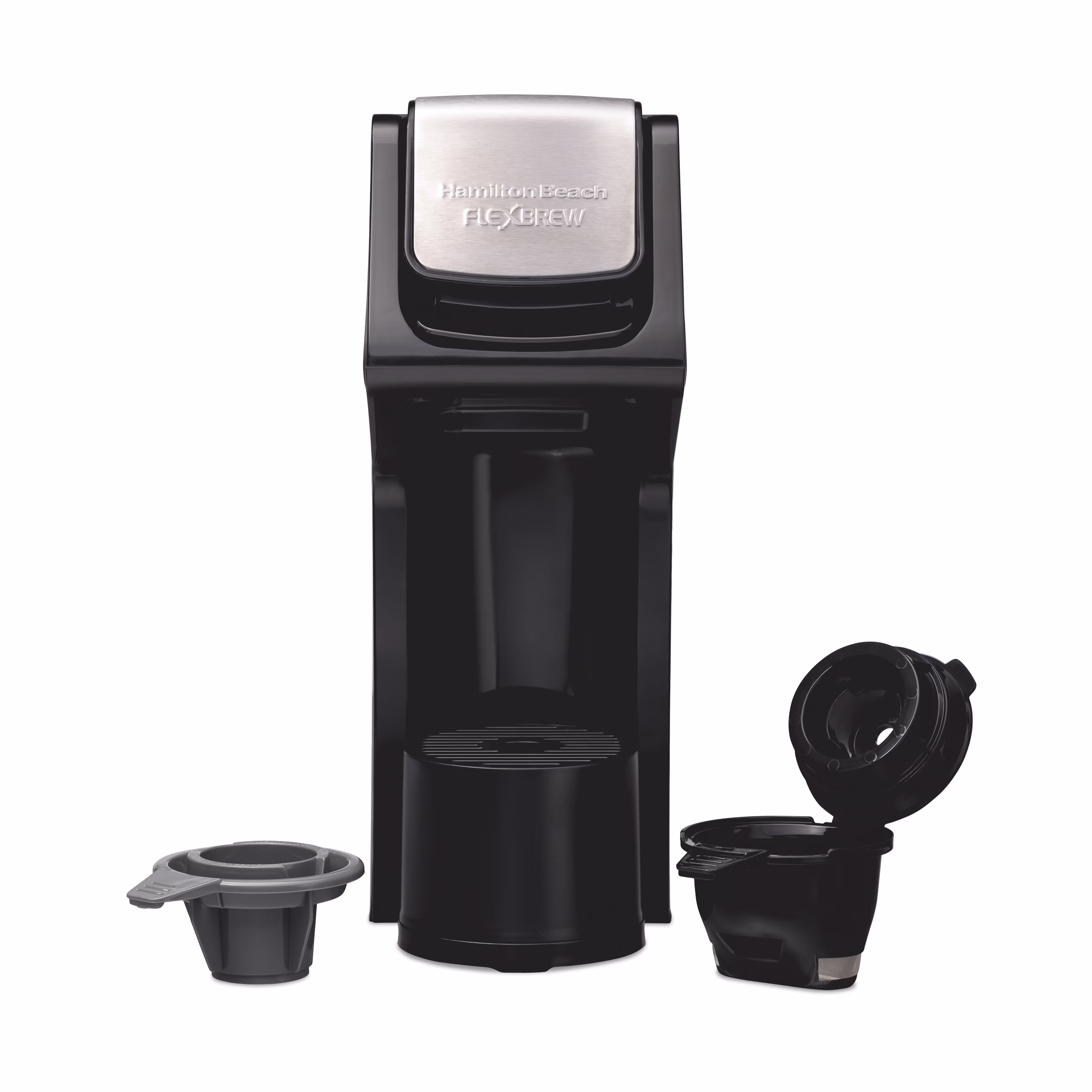 Hamilton Beach FlexBrew Sinlge Serve Coffee Maker, K Cup Pod Compatible & Grounds, 14 oz. Reservoir, Black & Stainless