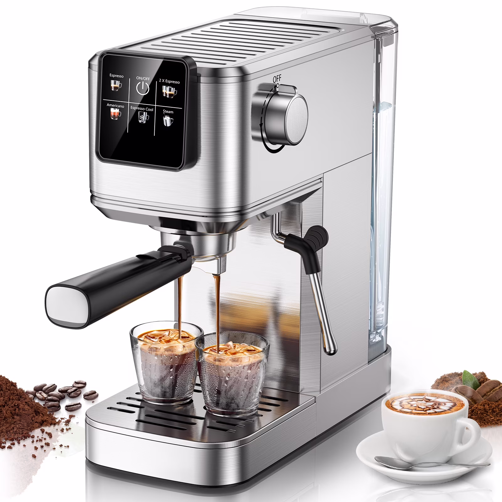 Espresso Machine 20Bar, Hot & Iced Coffee Machine with Rapid Cold Brew, Espresso Maker with Steam Wand, Touch Screen with 37oz Water Tank for Latte, Cappuccino, Gift for Coffee Lover