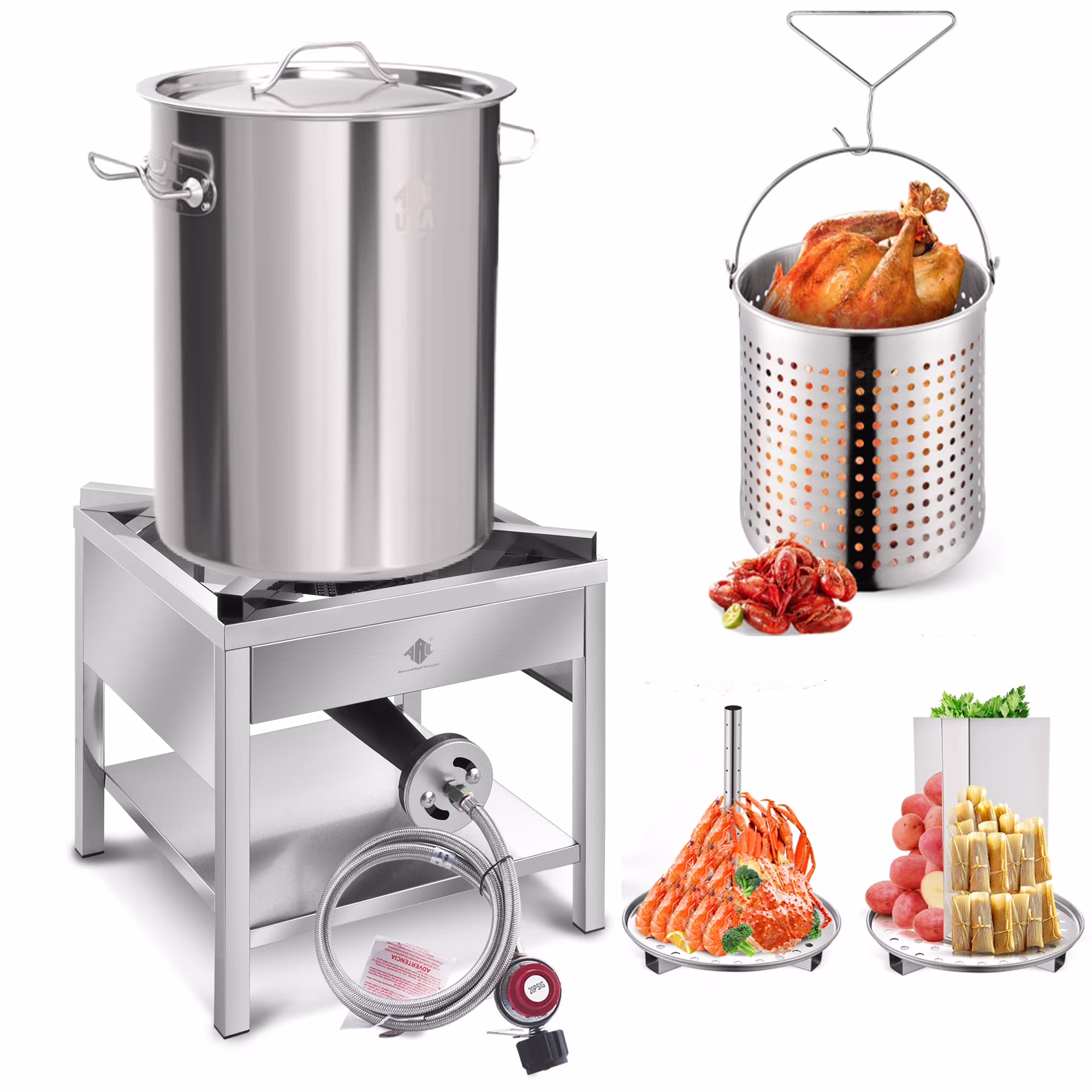 32QT Stainless Steel Pot with 200,000 BTU Propane Burner - Seafood Boil Pot, Crab Boil Pot, Lobster Pot, Shrimp Boil Pot, Tamale Steamer Pot with Basket and Turkey Fryer Burner