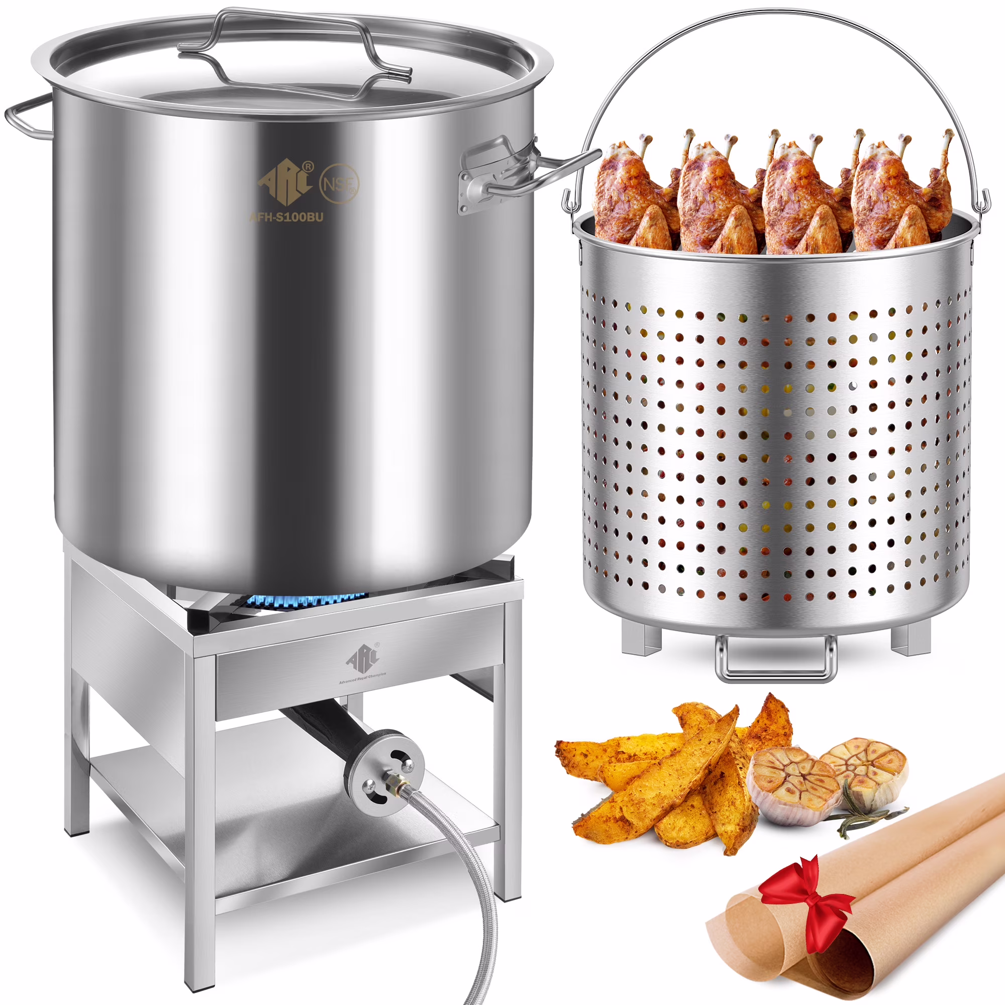 100QT Stainless Steel Seafood Boil Pot with 200,000BTU Propane Burner, w/Basket for Outdoor Deep Fryer, Large Cooking Pot for Turkey Fryer, Crab, Crawfish, Shrimp, Lobster Boiling Stock Pot