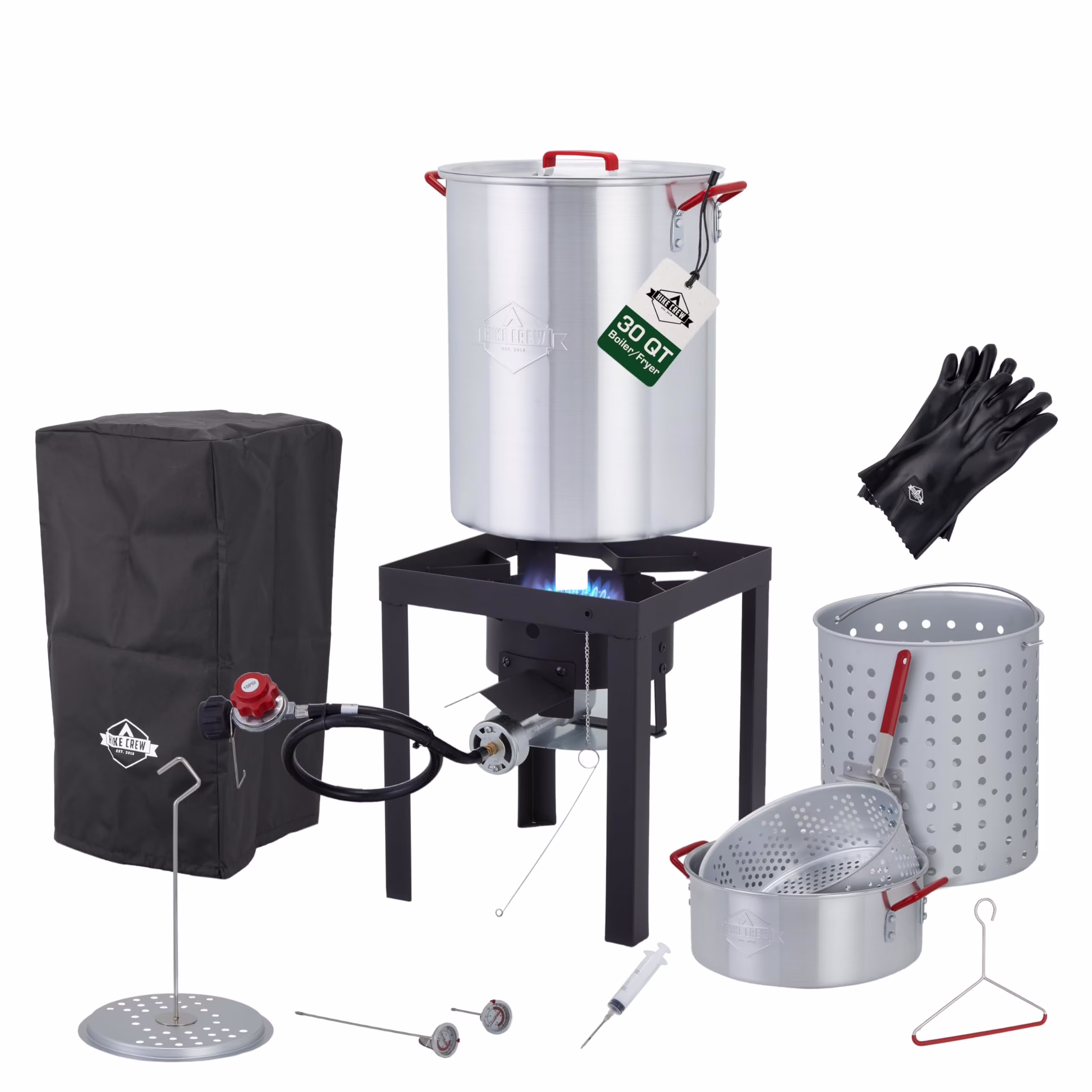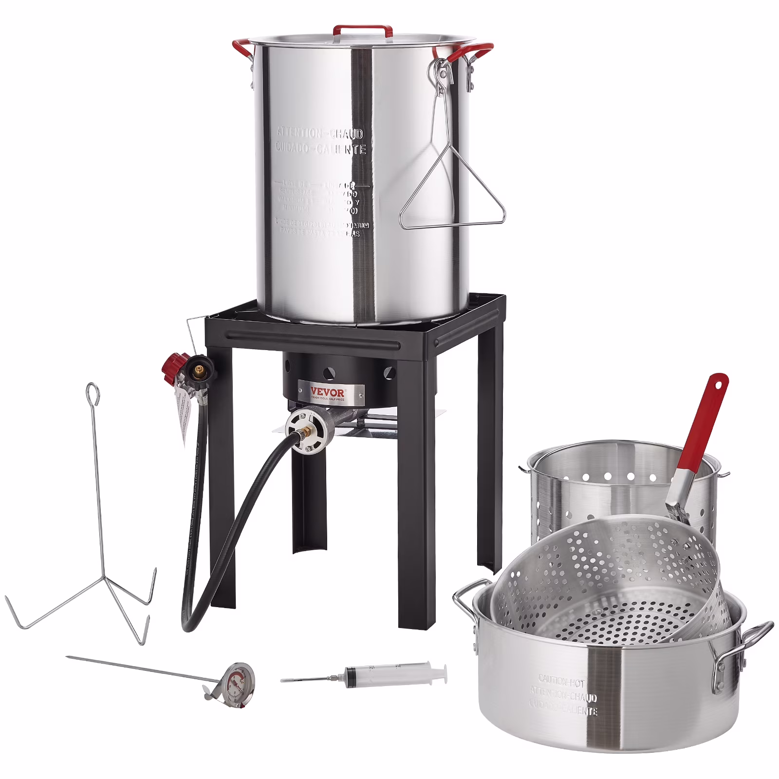Hike Crew 14-Piece Outdoor Turkey Fryer Kit W/30Qt Boiler Pot, 10Qt Turkey Fryer Pot, Stand & More