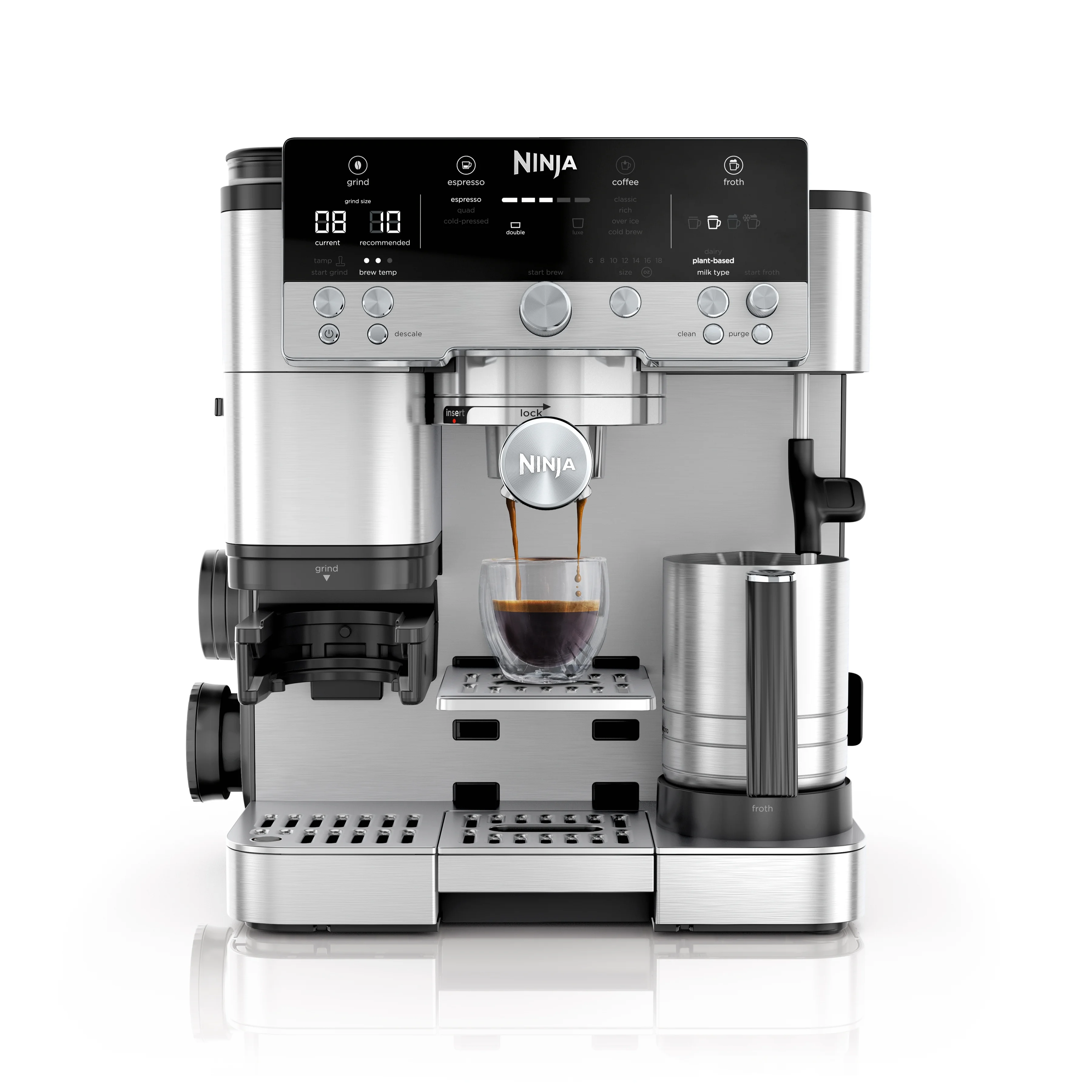 Ninja Luxe Cafe Premier Series, Stainless Steel Espresso Machine and Drip Coffee Maker with integrated Coffee Grinder and Milk Frother, ES601
