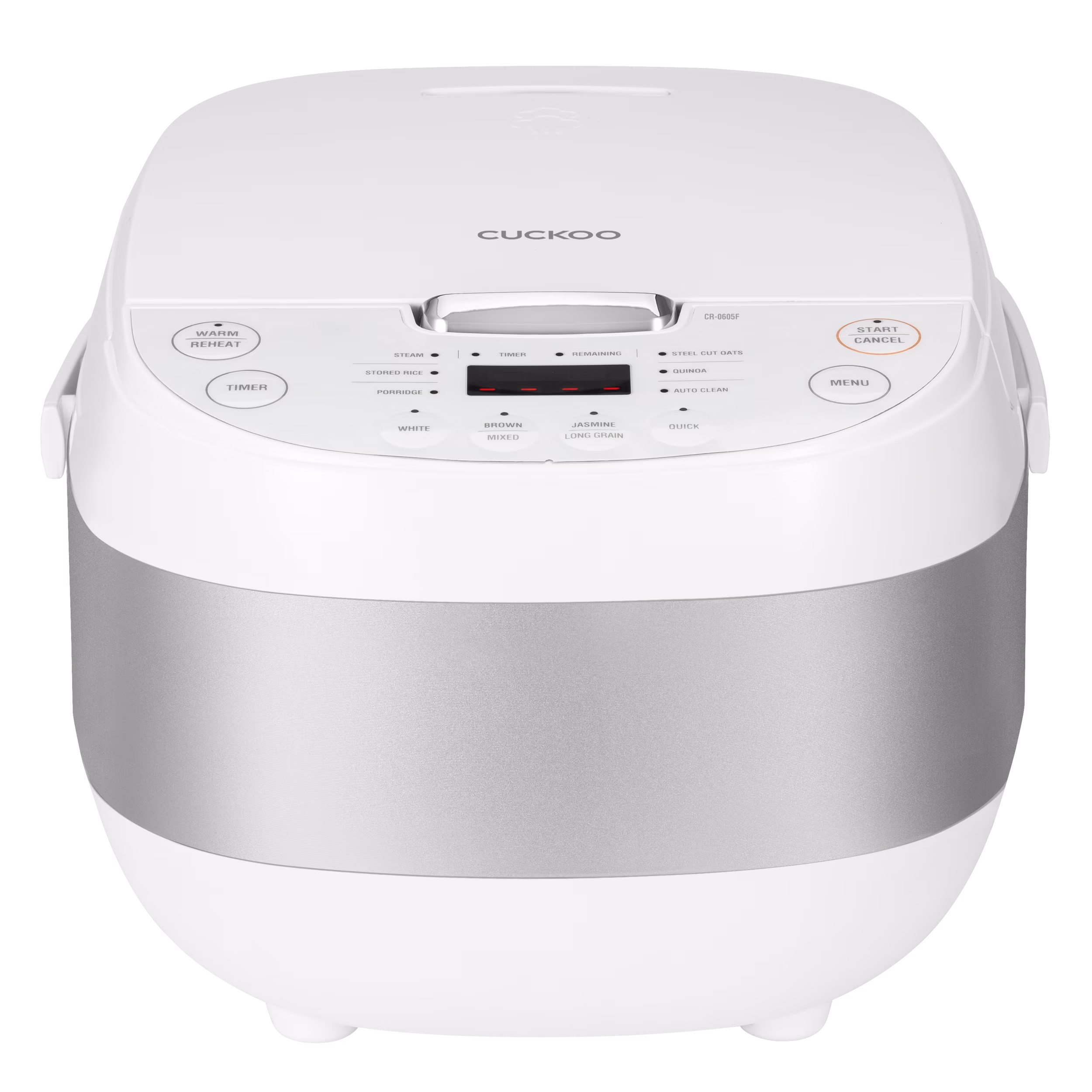 CUCKOO CR-0605F 6-Cup (Uncooked) / 12-Cup (Cooked) Micom Rice Cooker with Nonstick Inner Pot, 13 Menu Options, LCD Display, Fuzzy Logic Tech, Auto Clean (White)