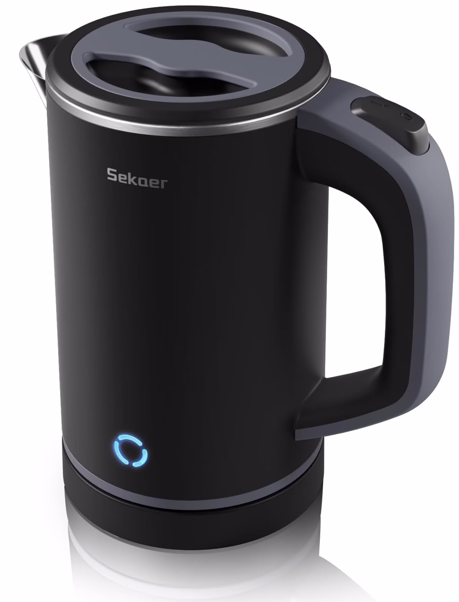 Sekaer Travel Electric Tea Kettle with Auto Shut-Off & Boil Dry Protection, 304 Stainless Steel Mini Portable Water Boiler, 0.8 L Fast Heating Coffee Kettle, Perfect Holiday Gifts Black