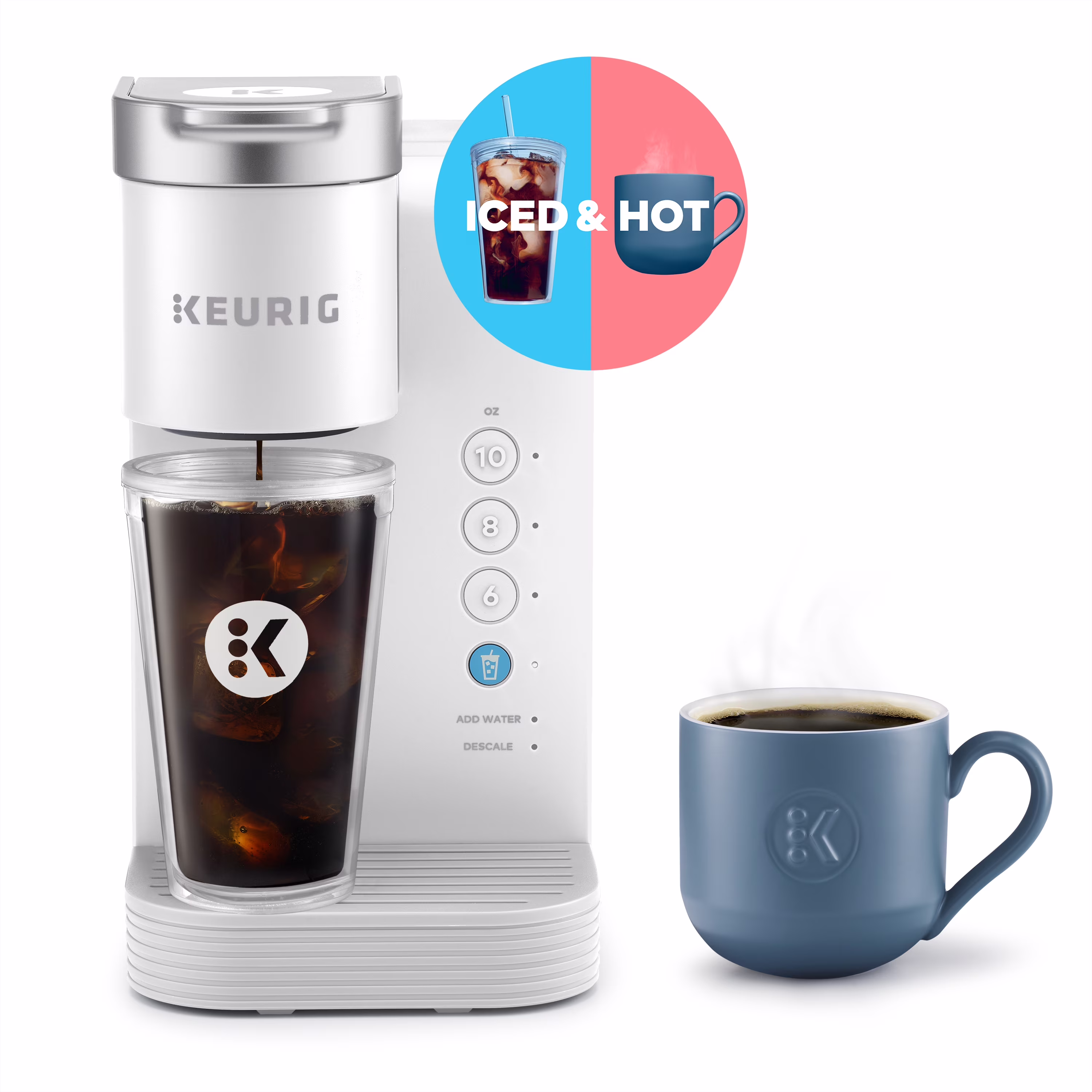 Keurig K-Iced Essentials Iced and Hot Single-Serve K-Cup Pod Coffee Maker, White