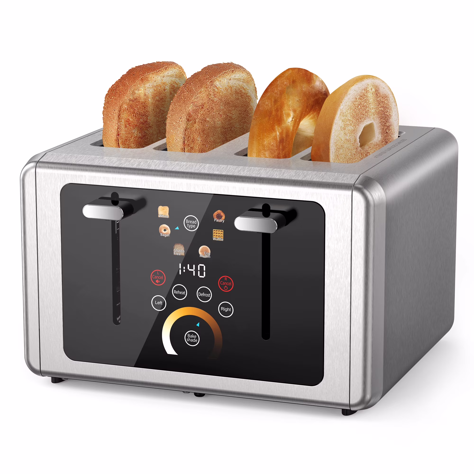 WHALLULTRA Touchscreen Toaster 4 Slice - Stainless Steel Toaster, 6 Shade Settings, Extra Wide Slots Toaster with Bagel, Cancel, Defrost Functions