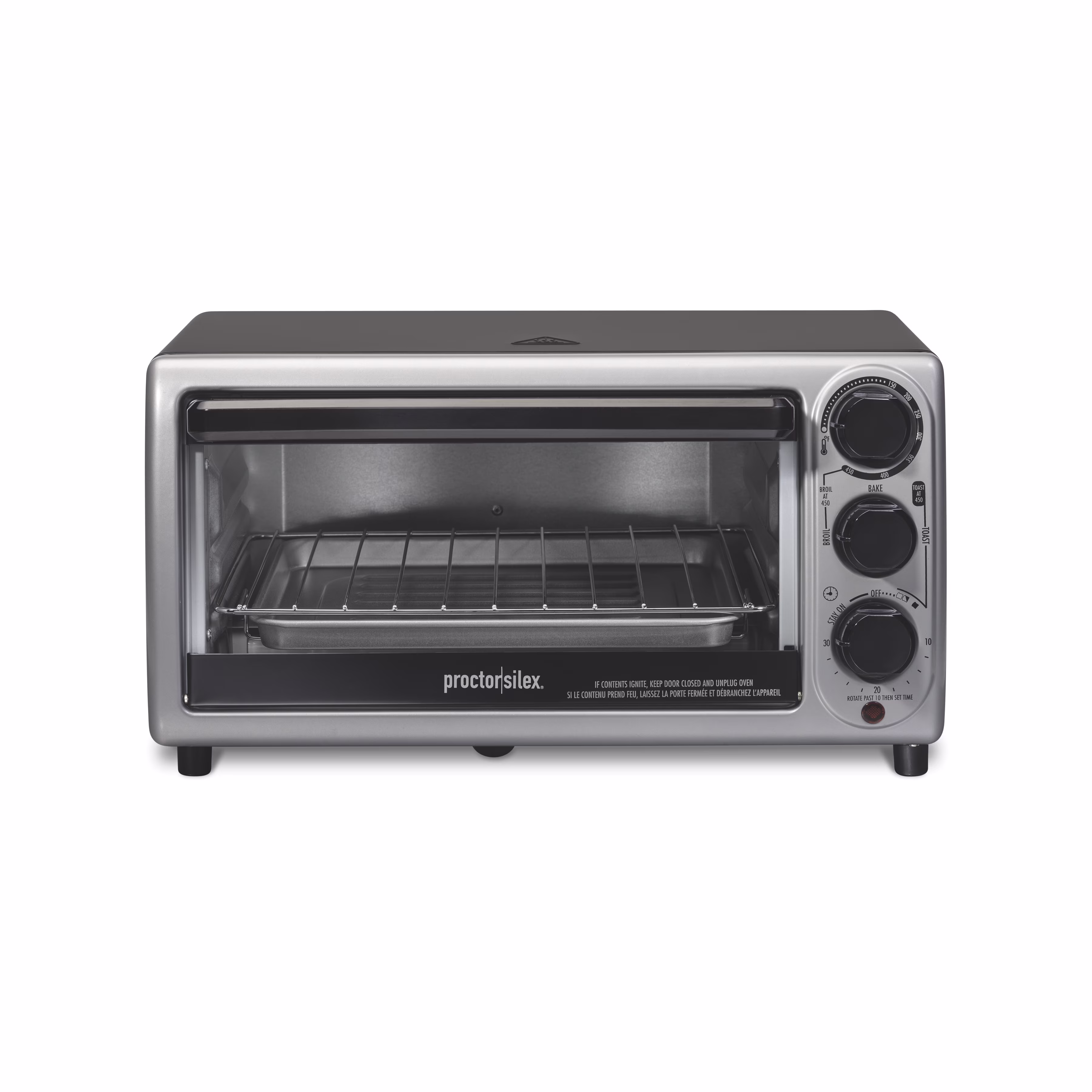 Proctor Silex Modern Toaster Oven, 1100 Watts, Black with Silver Accents, 31122