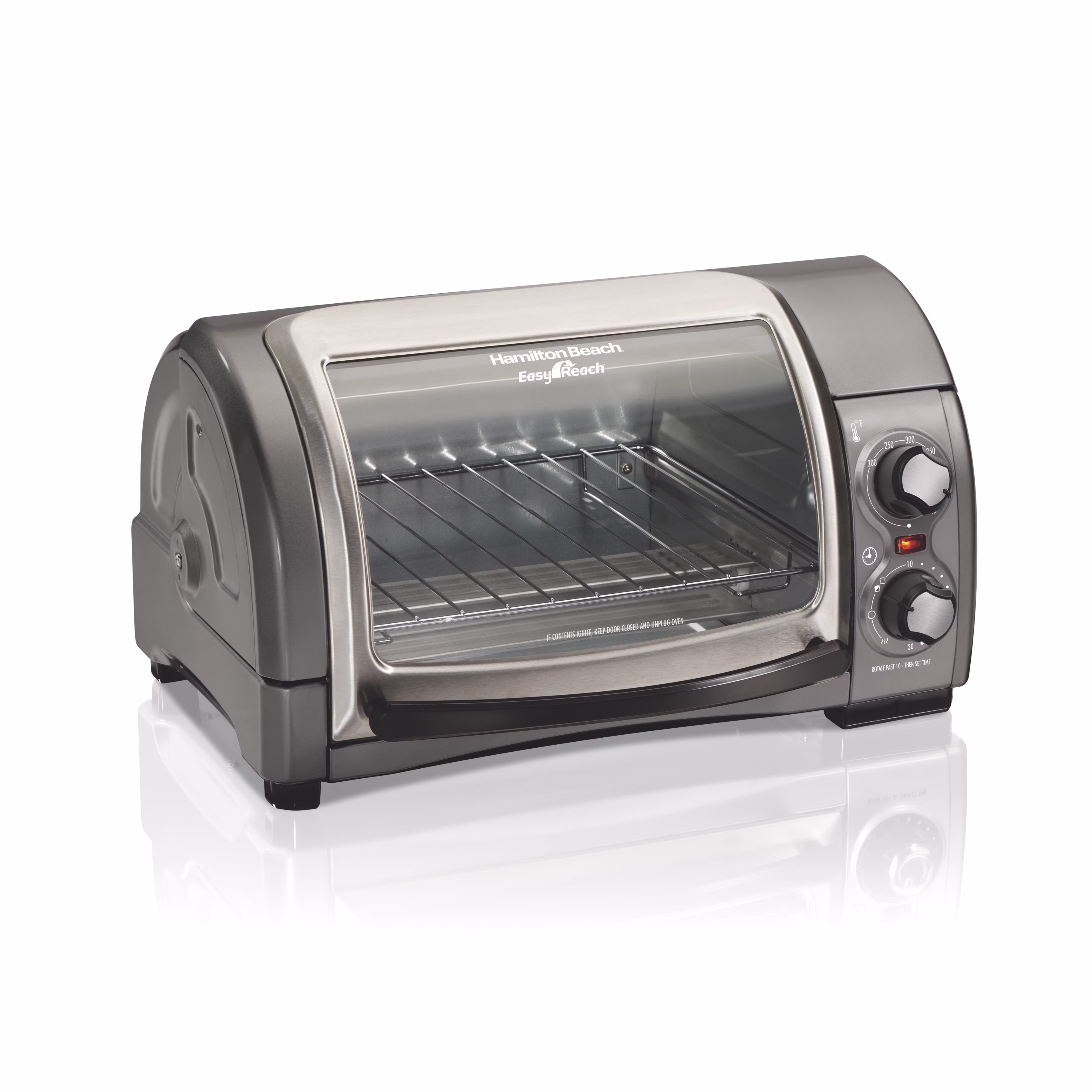 Hamilton Beach 4 Slice Countertop Toaster Oven with Easy Reach Roll-Top Door, Bake, Broil & Toast Functions, Silver
