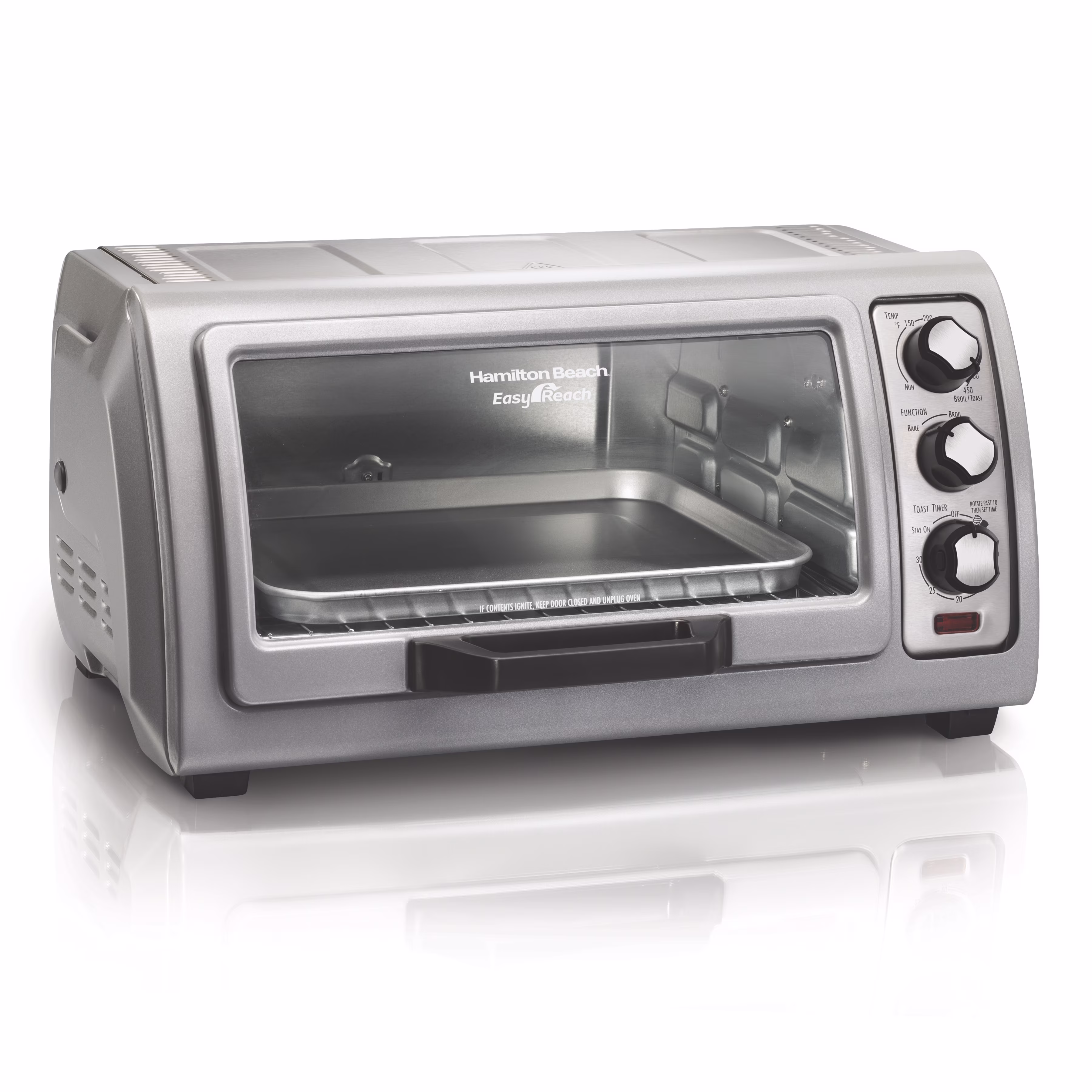 Hamilton Beach 6 Slice Countertop Toaster Oven with Easy Reach Roll-Top Door, Bake, Broil & Toast Functions, Silver