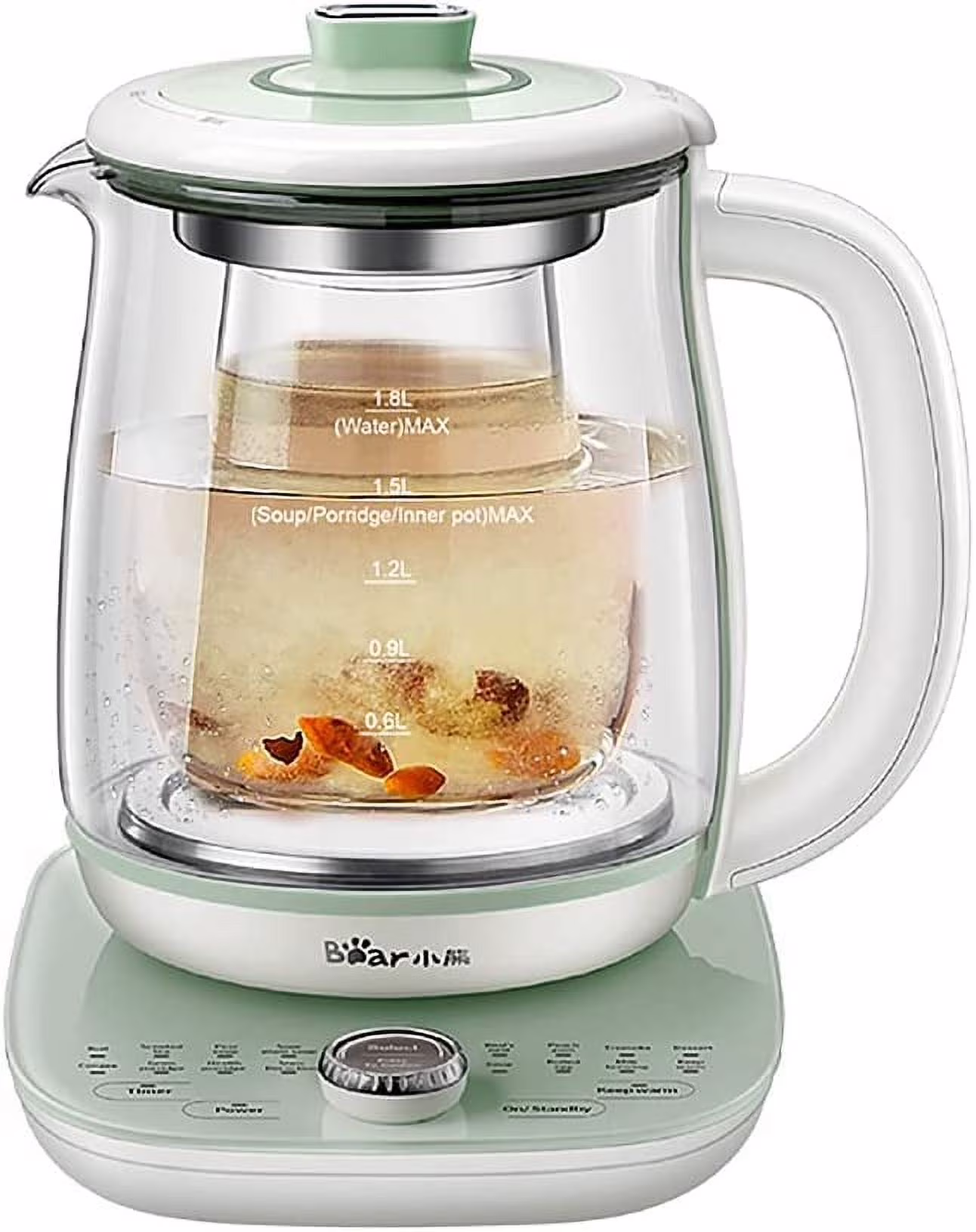 Bear YSH-C18S2 Health Pot, Electric Kettle Tea Maker with Infuser, Glass Kettle & Stew Pot, 16 Menus 1.8L 120V, Green
