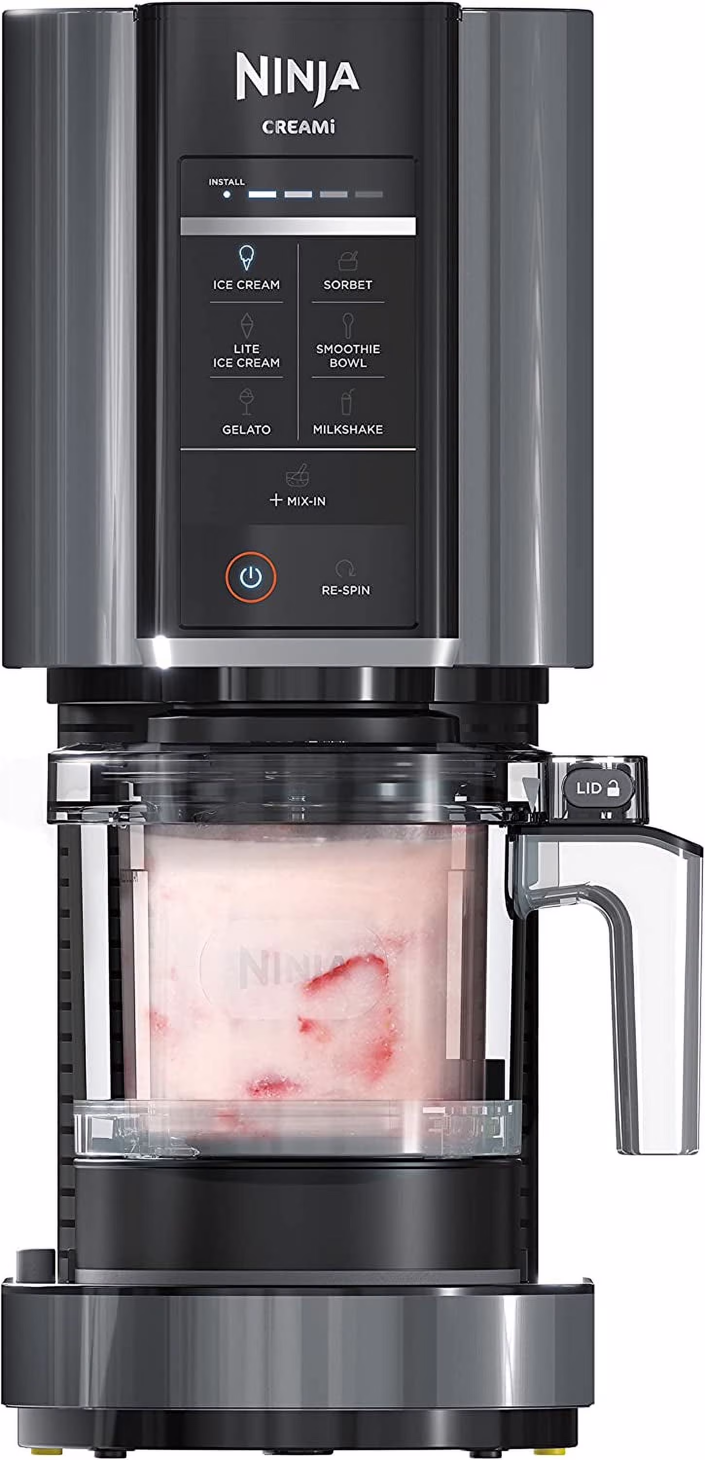 Ninja CREAMi, Ice Cream Maker, Ice Cream, Gelato, Sorbet,Milkshakes, Mix-ins, Smoothie Bowls & More, 7-in-1, Ice Cream Pints, Pint lid, Healthy Ice Cream, Compact, Perfect for Kids, Black, NC299AMZ